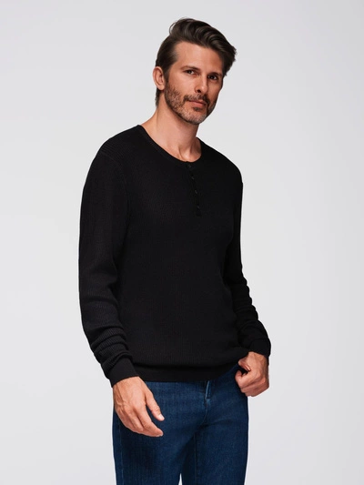 Men's knitted T-shirt with buttons at neckline - black V2 OM-TSCT-0254