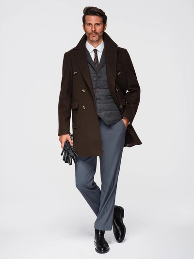 Men's tailored structured coat with high collar - navy blue V2 OM-COWC-0136