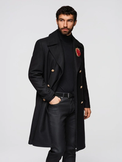 Long men's single-breasted coat with collar and undercoat - navy blue V3 OM-COWC-0135