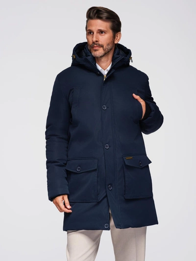 Zimowa kurtka męska z odpinanym kapturem z wodoodpornego materiału - granatowa V1 OM-JAHP-0306