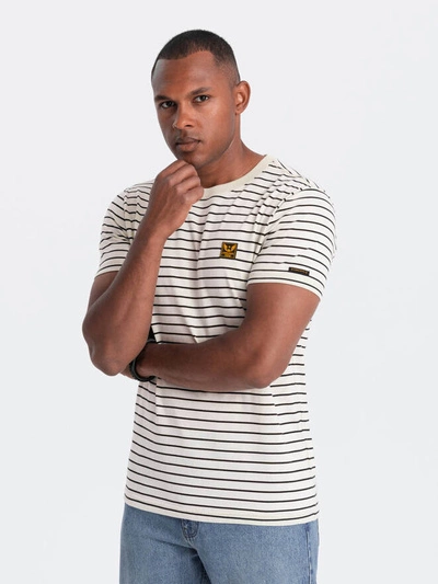 Męski bawełniany t-shirt z nadrukiem na kieszonce Ombre Streetstyle – piaskowy V6 OM-TSCT-0108