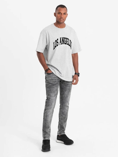 Męskie spodnie dresowe joggery na gumce z przeszyciami – popielate V1 OM-PASK-0142