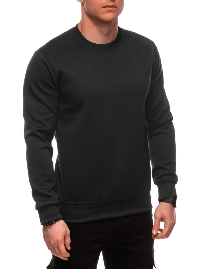 Jednolita bluza męska dresowa round neck BASIC – ciemnooliwkowa V2 EM-SSBN-0100