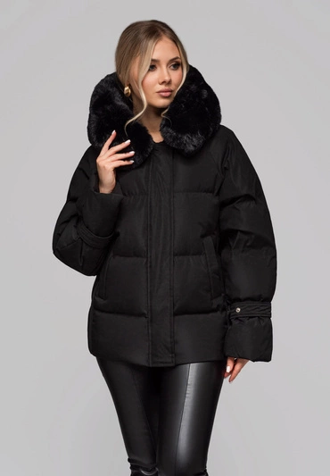 Kurtka damska z odpinanym futrem OW-JALP-0100 v1 - czarna