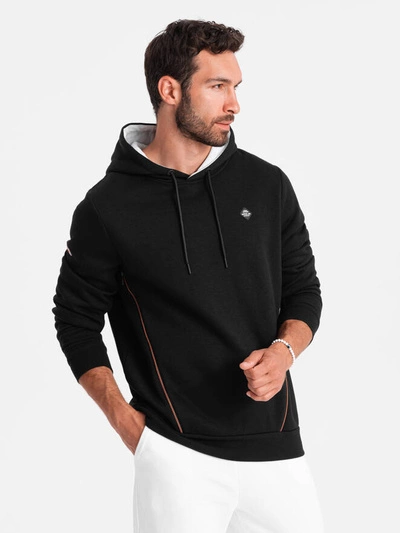 Bluza męska z kapturem z kieszenią na zamek - czarna V4 OM-SSNZ-22FW-006