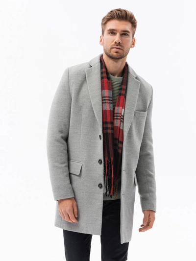 Płaszcz męski klasyczny jednorzędowy - jasnoszary V4 C432