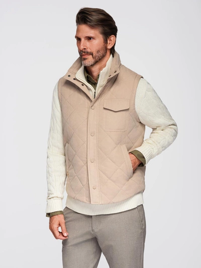 Pikowana męska kamizelka z efektem peach – beżowy V1 OM-JAVJ-0277