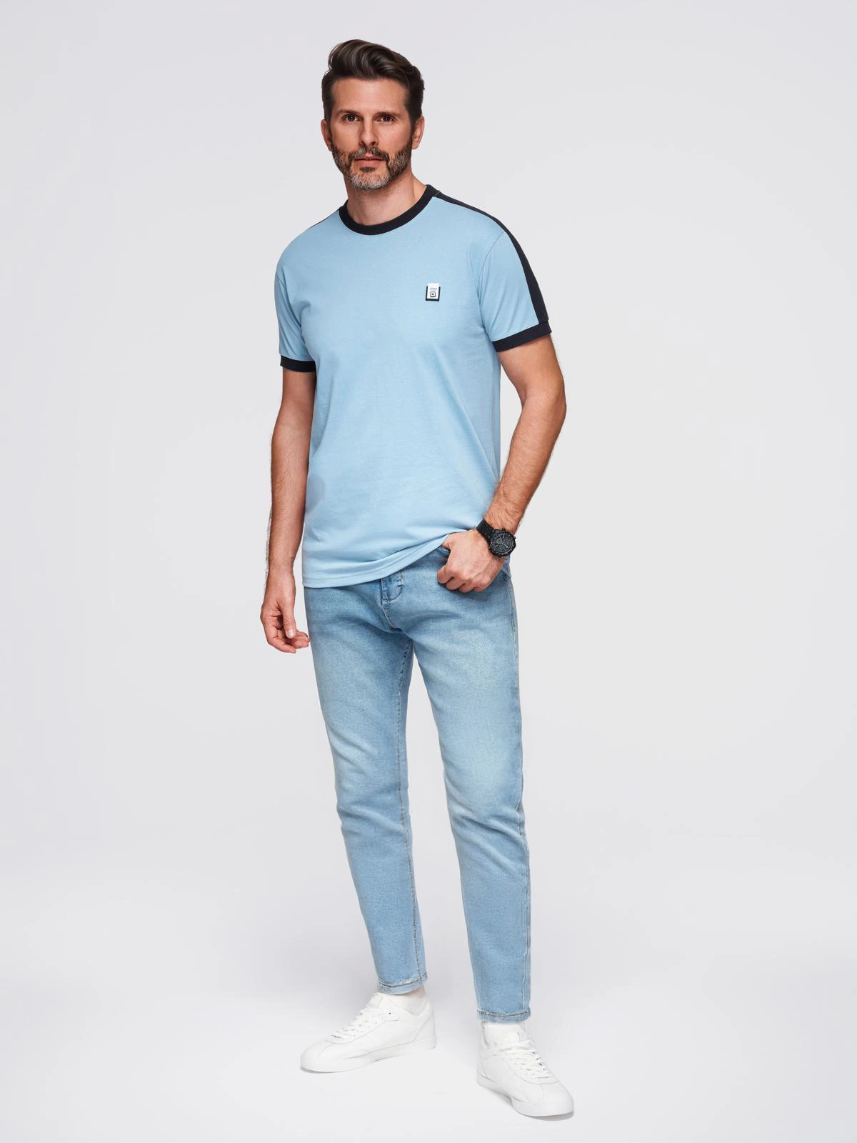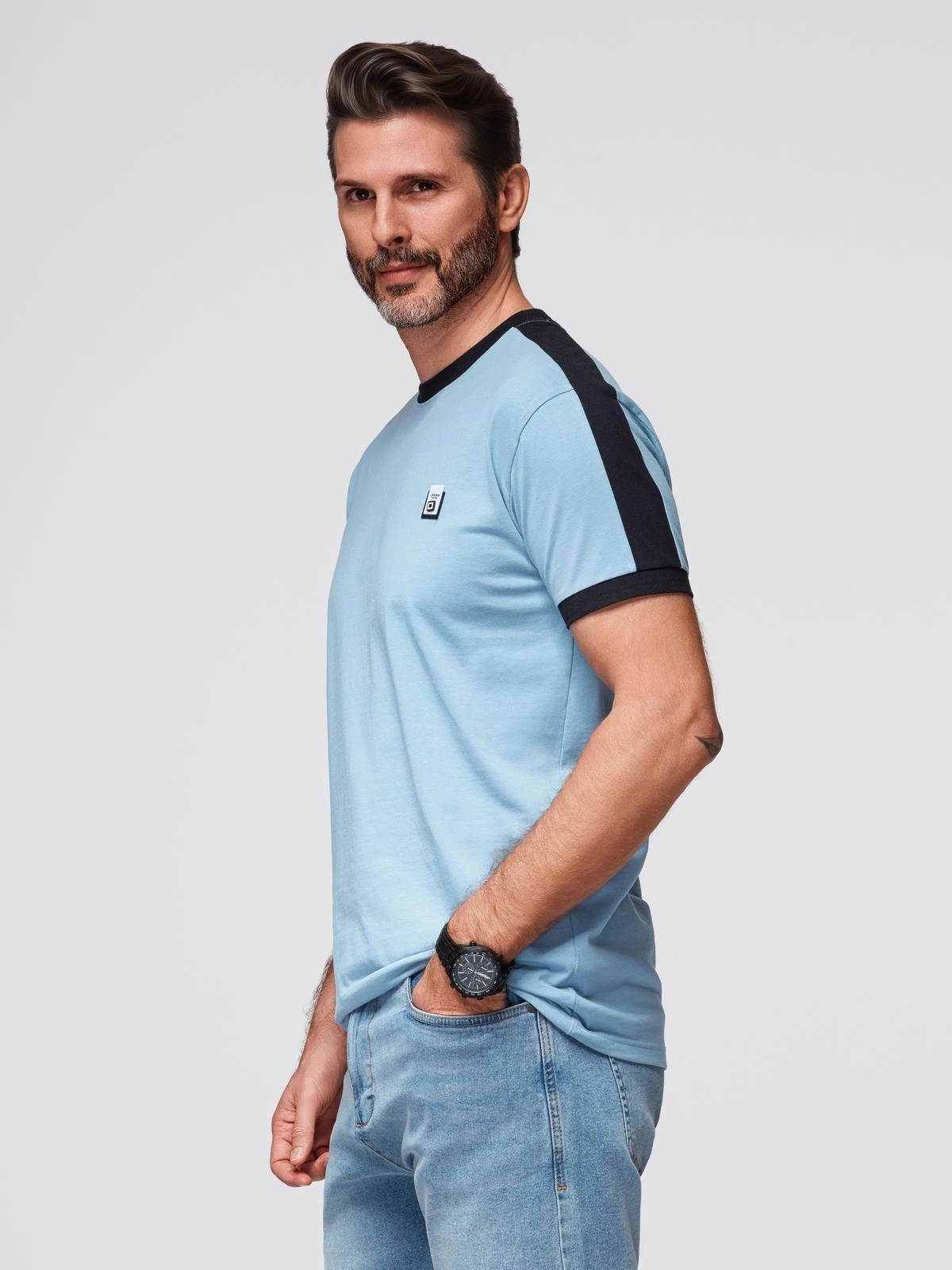 Stand out from the crowd with this t-shirt from the Ombre line, which combines a classic cut with modern details. Contrasting stripes on the shoulders and sleeves give it a sporty touch, while a decorative patch on the chest subtly highlights the brand's branding. This is an ideal choice for men who appreciate comfort and original style - both for everyday wear and urban styling.