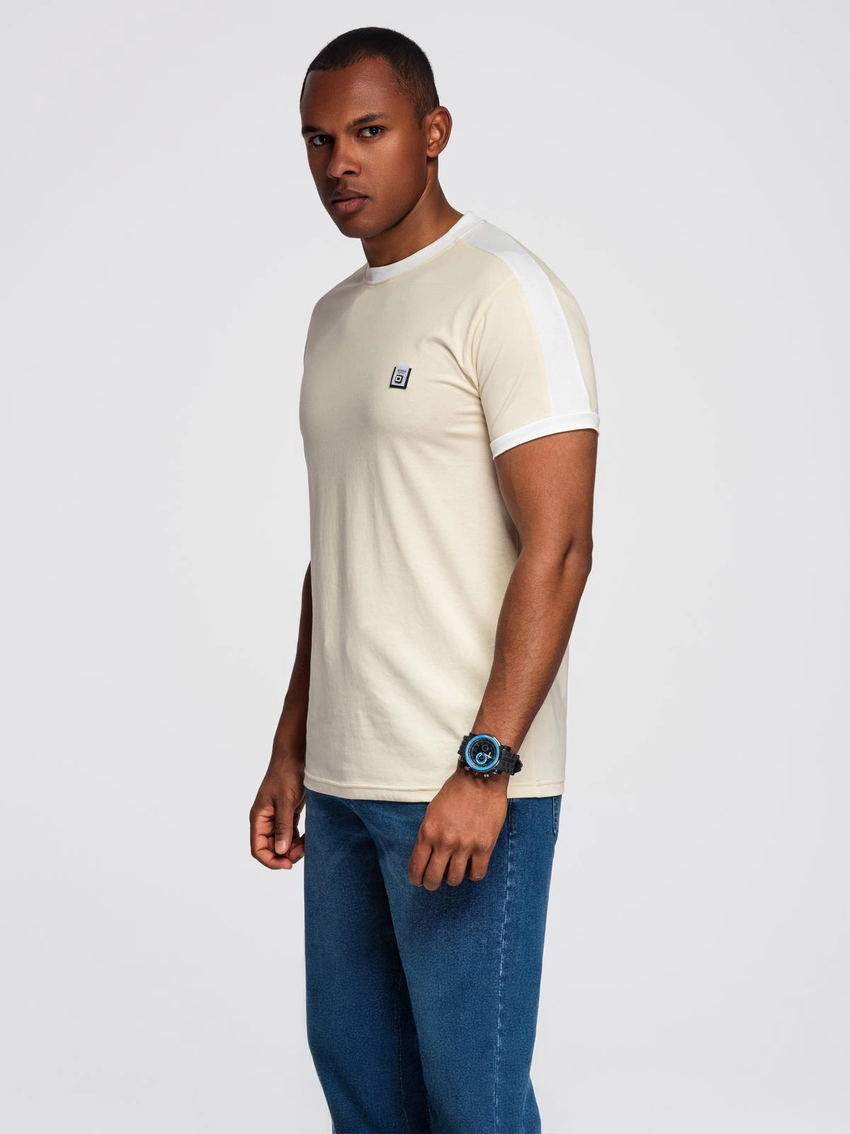 Stand out from the crowd with this t-shirt from the Ombre line, which combines a classic cut with modern details. Contrasting stripes on the shoulders and sleeves give it a sporty touch, while a decorative patch on the chest subtly highlights the brand's branding. This is an ideal choice for men who appreciate comfort and original style - both for everyday wear and urban styling.