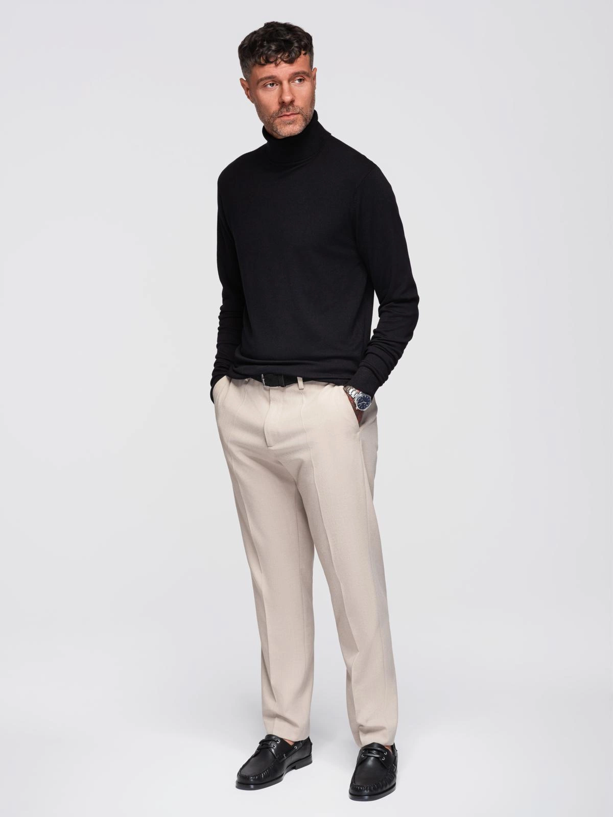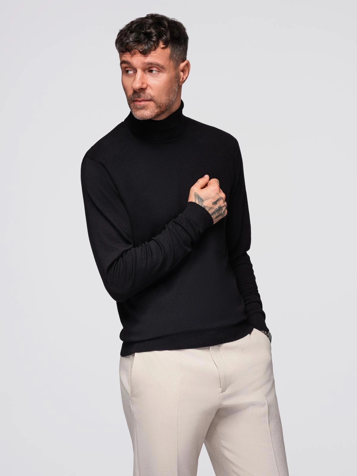 - Bottom of turtleneck and sleeves finished with ribbed cuffs