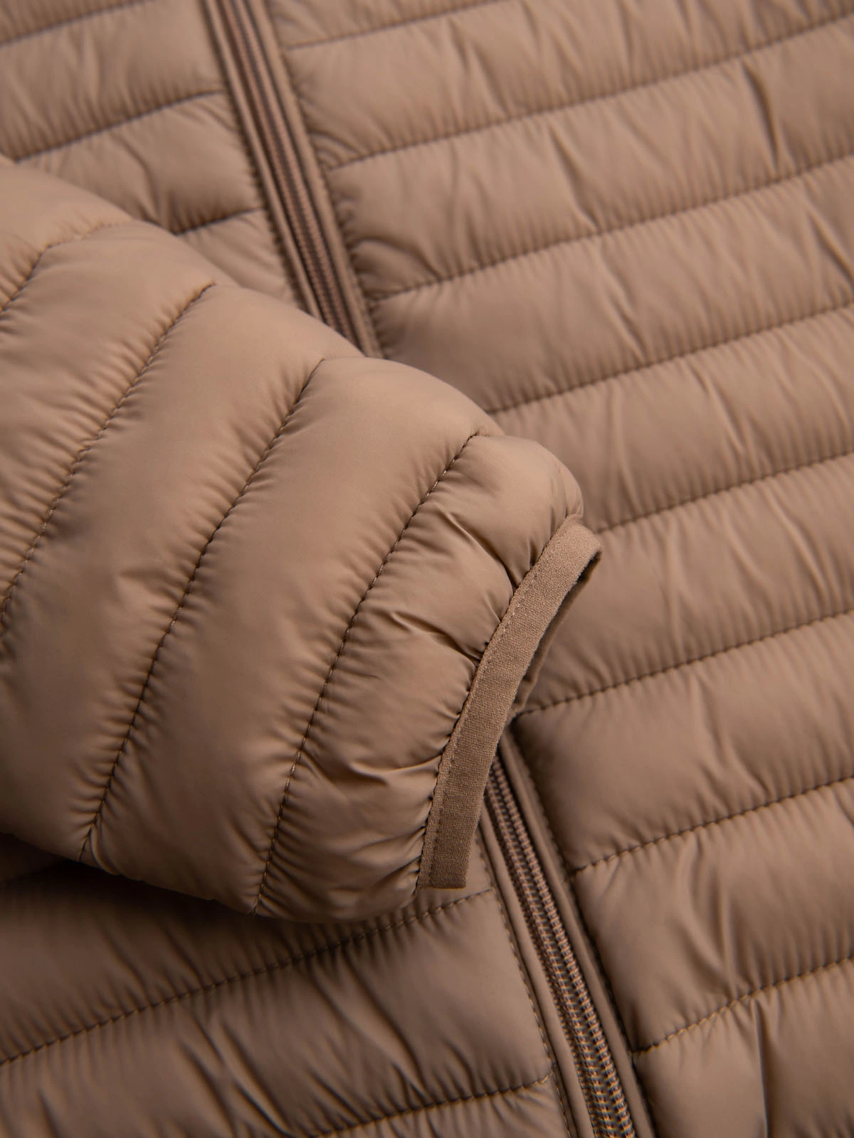 - Collar, sleeves and bottom of the jacket finished with a ribbed hem