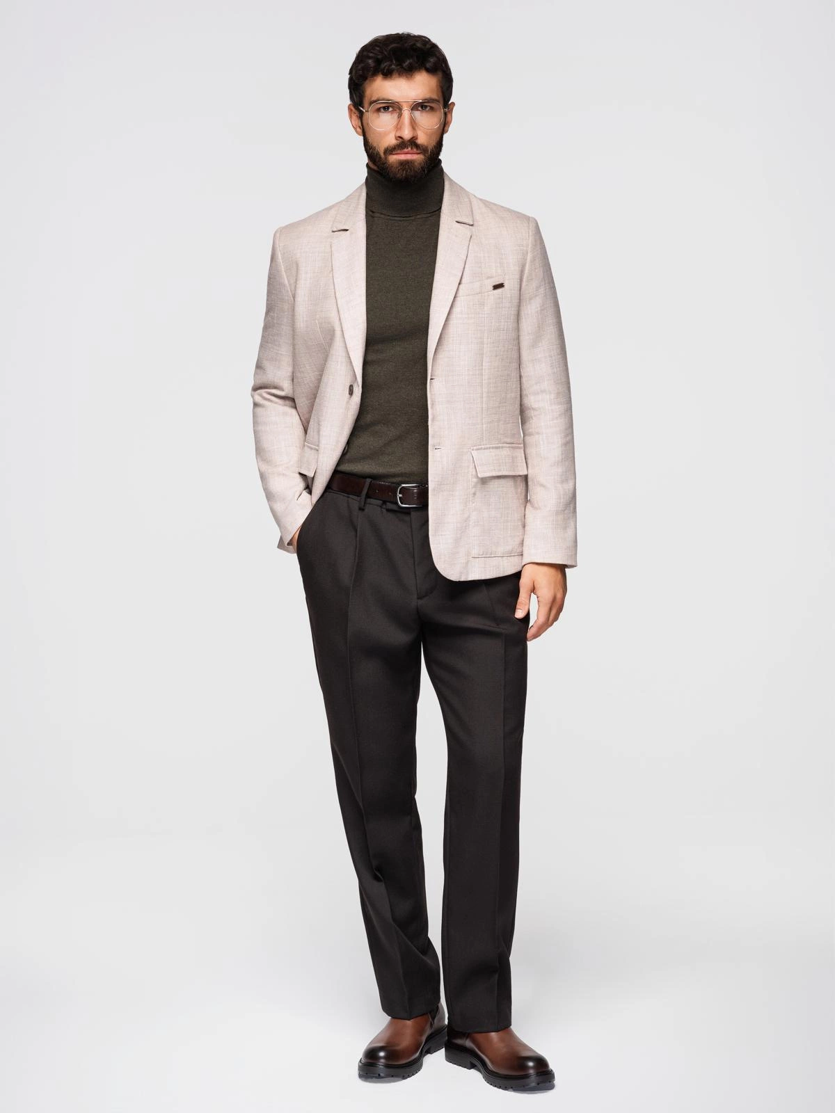 The classic jacket will be a tasteful part of styling for work and informal meetings. The distinctive structure and pattern is due to the admixture of linen, which gives the fabric nobility. The material is durable and easy to clean, and is less prone to creasing and electrification. Thanks to the right combination of materials, the jacket is lightweight and fits freely on the body. Its straight cut is accentuated by capacious outer pockets