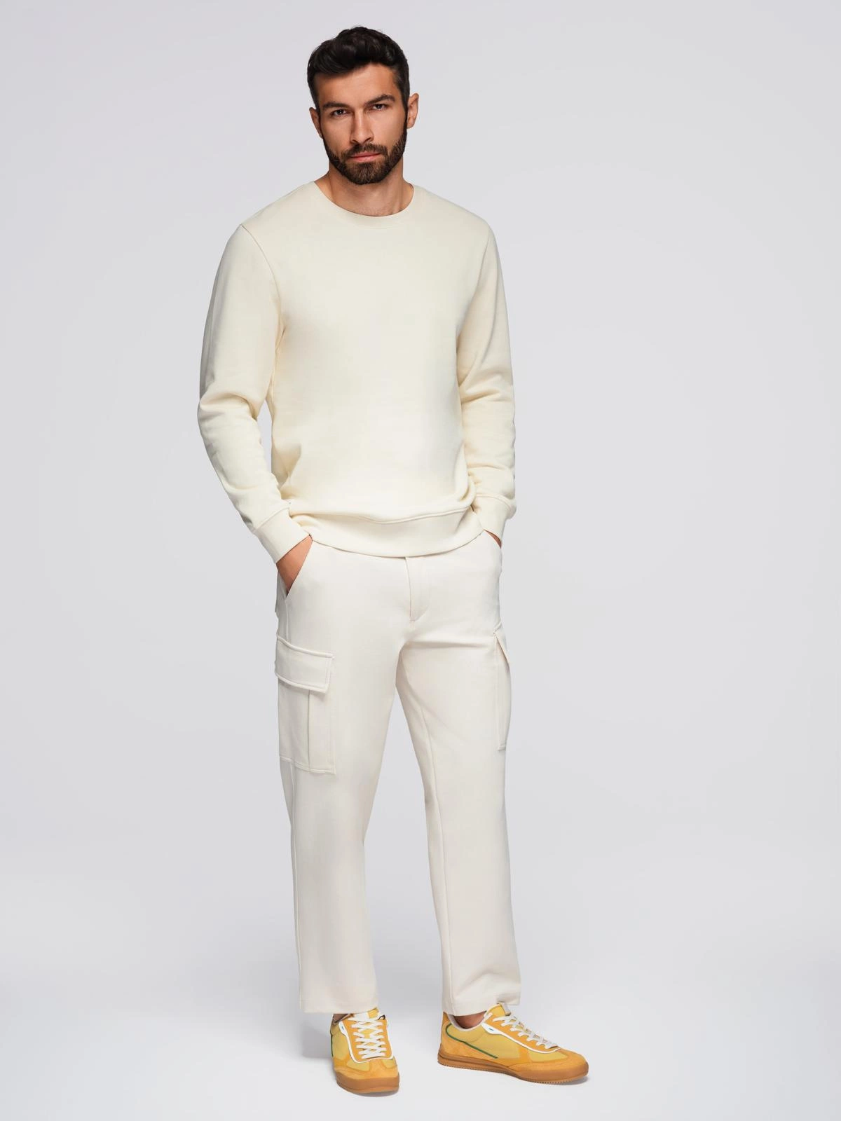 Basic men's sweatshirt is sure to find its place in more than one closet. It is made of 100 percent cotton, which prevents excessive sweating. The skin-friendly soft material is breathable and gives a feeling of freedom of wear. The universal cut makes the sweatshirt lay on the body, adapting well to many silhouettes.