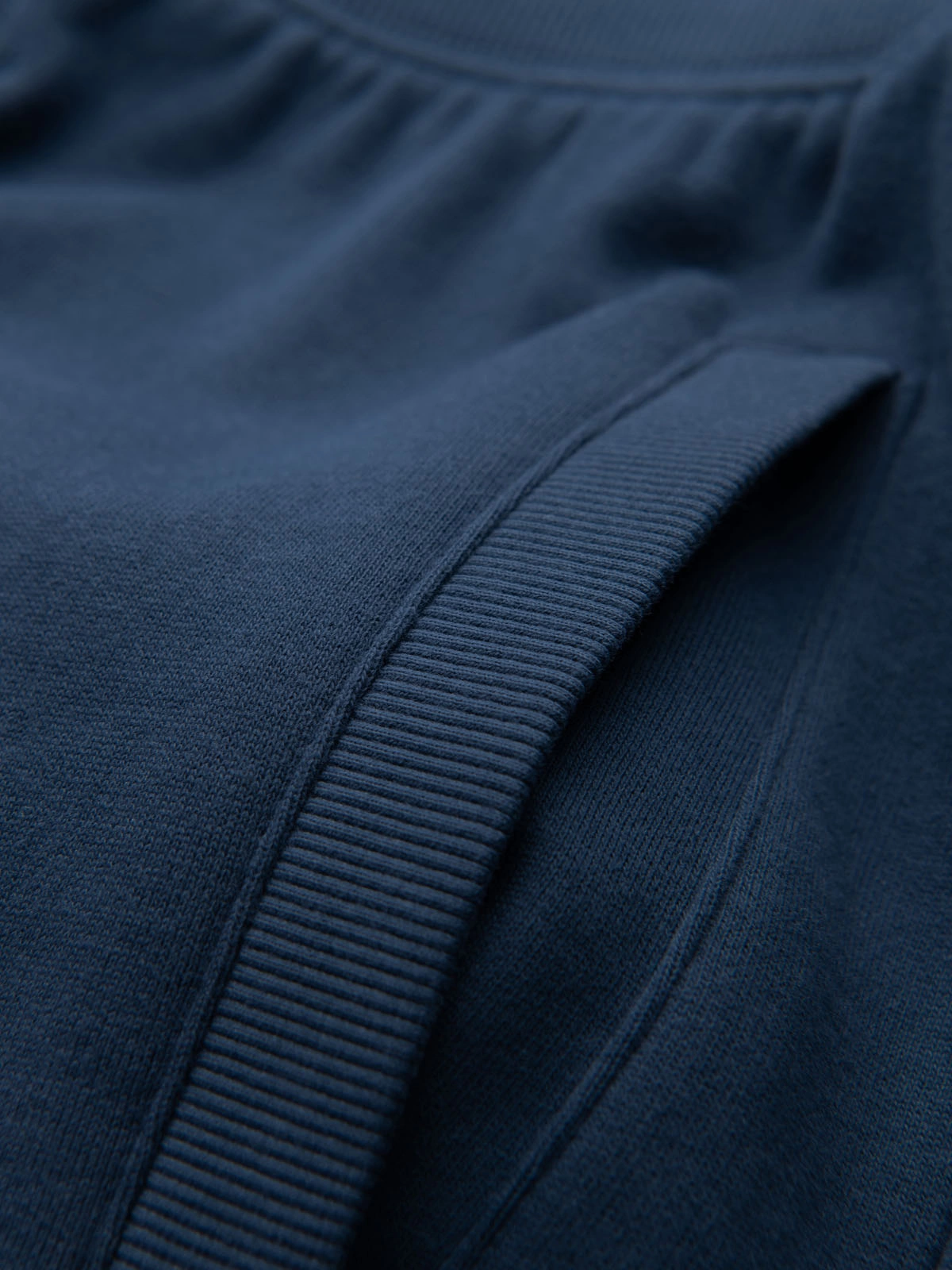 Comfortable, loose-fitting sweat shorts made of soft-textured cotton knit fabric. The inset front pockets are very roomy and practical, and the trim adds to the feeling of comfort. These sweatshorts wear well thanks to the adjustable drawstring waist. This is an ideal model for holiday trips and outdoor recreation.