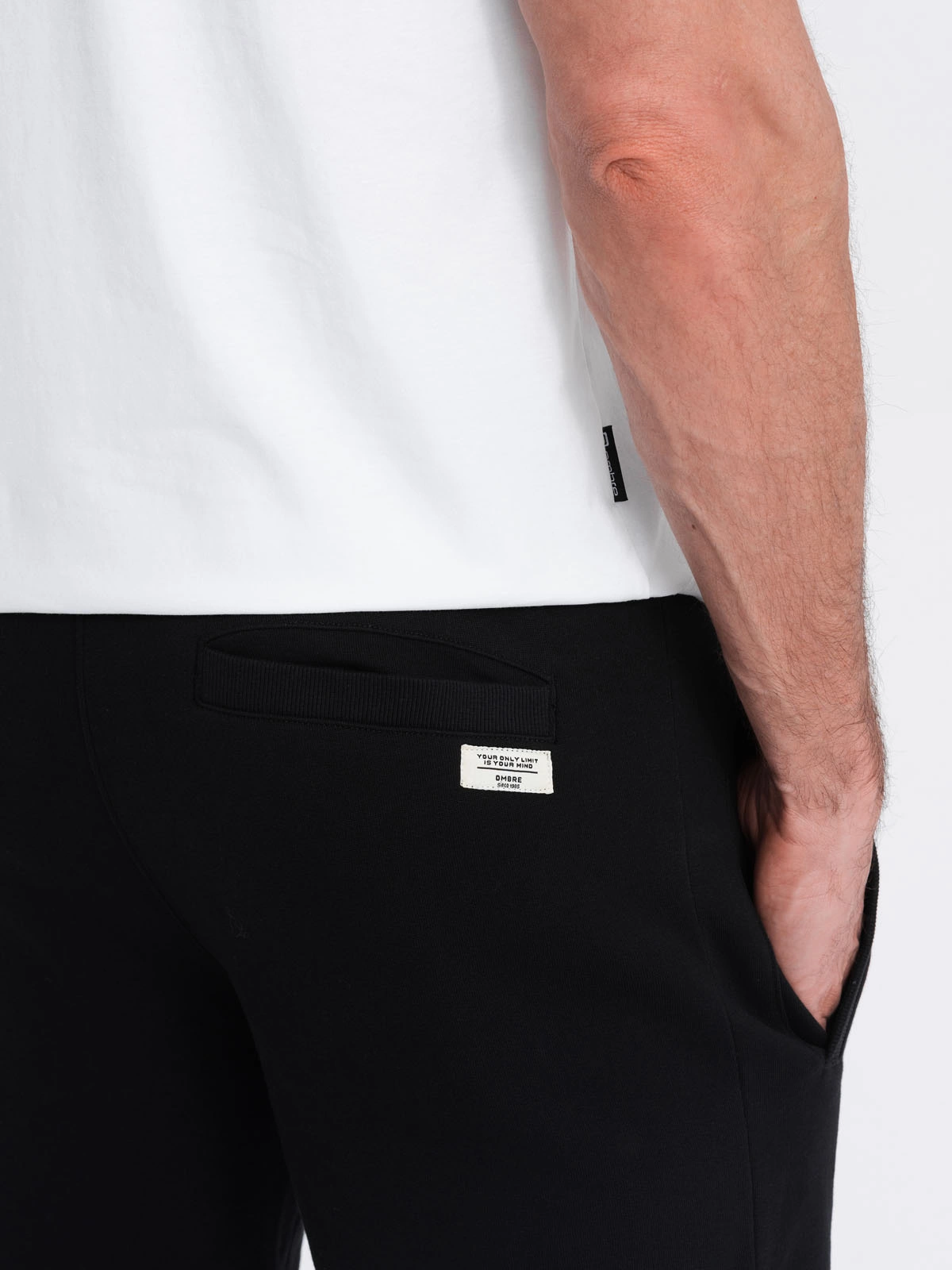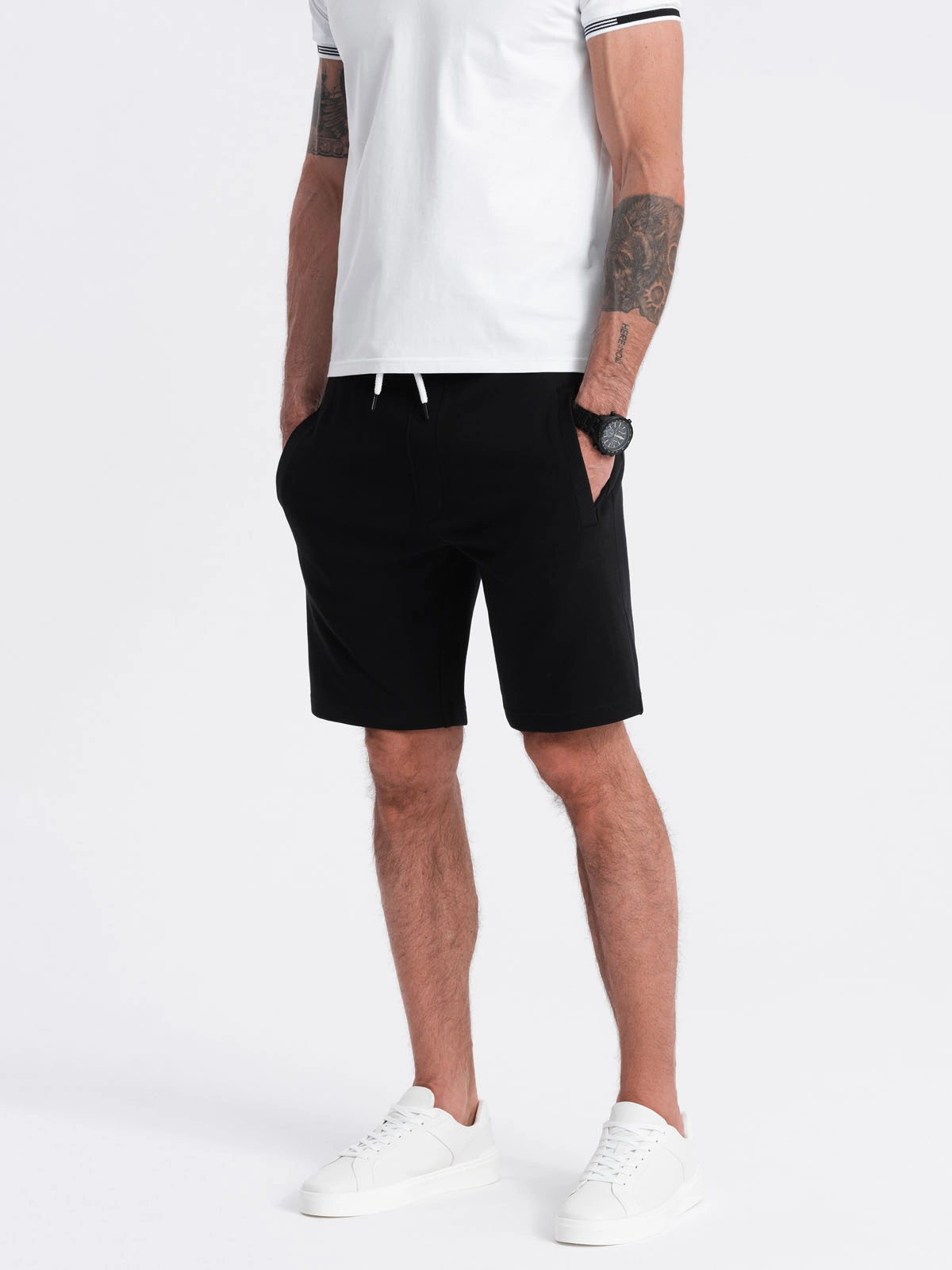 Comfortable, loose-fitting sweat shorts made of soft-textured cotton knit fabric. The inset front pockets are very roomy and practical, and the trim adds to the feeling of comfort. These sweatshorts wear well thanks to the adjustable drawstring waist. This is an ideal model for holiday trips and outdoor recreation.