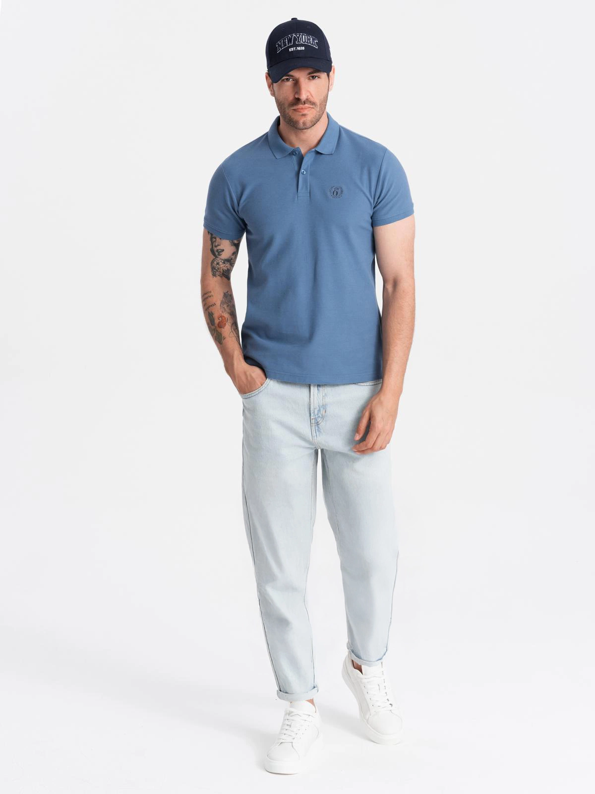 One of the proven classics of smart casual style is certainly the men's polo shirt. It's a basic that works as a substitute for a shirt in outfit compositions, and will also accentuate outfits in sports conventions. The polo is made of one hundred percent cotton pique knit, so it will work especially well in spring and summer. The shirt is extremely breathable and wicks away moisture, so you can also wear it on hot days. The straight, slightly elongated cut with cuts on the sides will fit a variety of men's silhouettes. Uniform color scheme will work both as a contrasting element of styling and in total look compositions.
