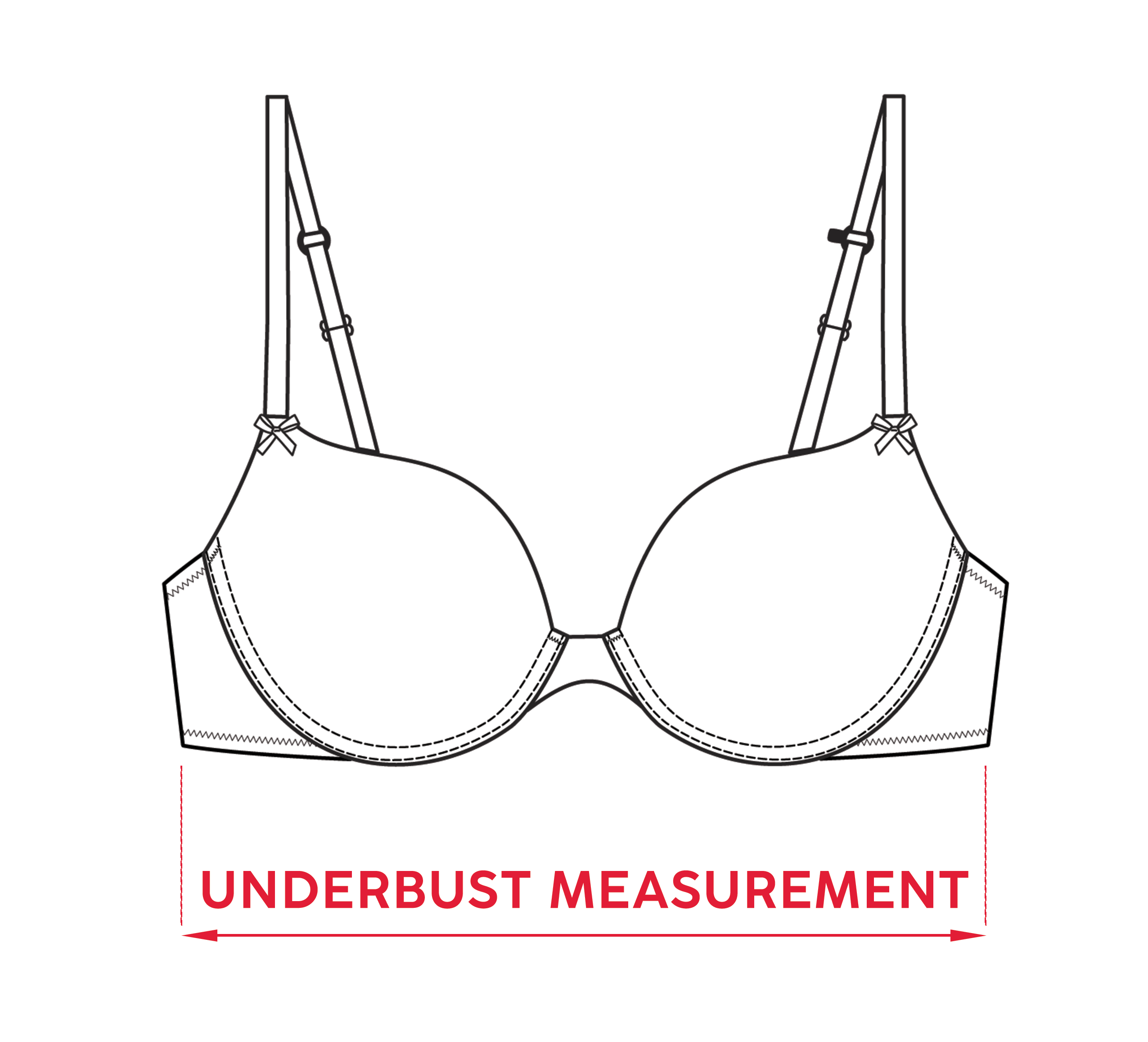 Circumference under the breasts measure horizontally around the entire circumference under the breasts in an upright position