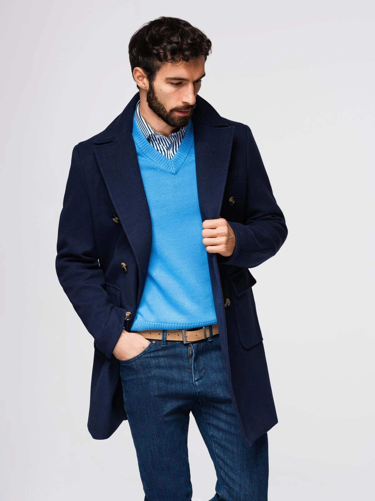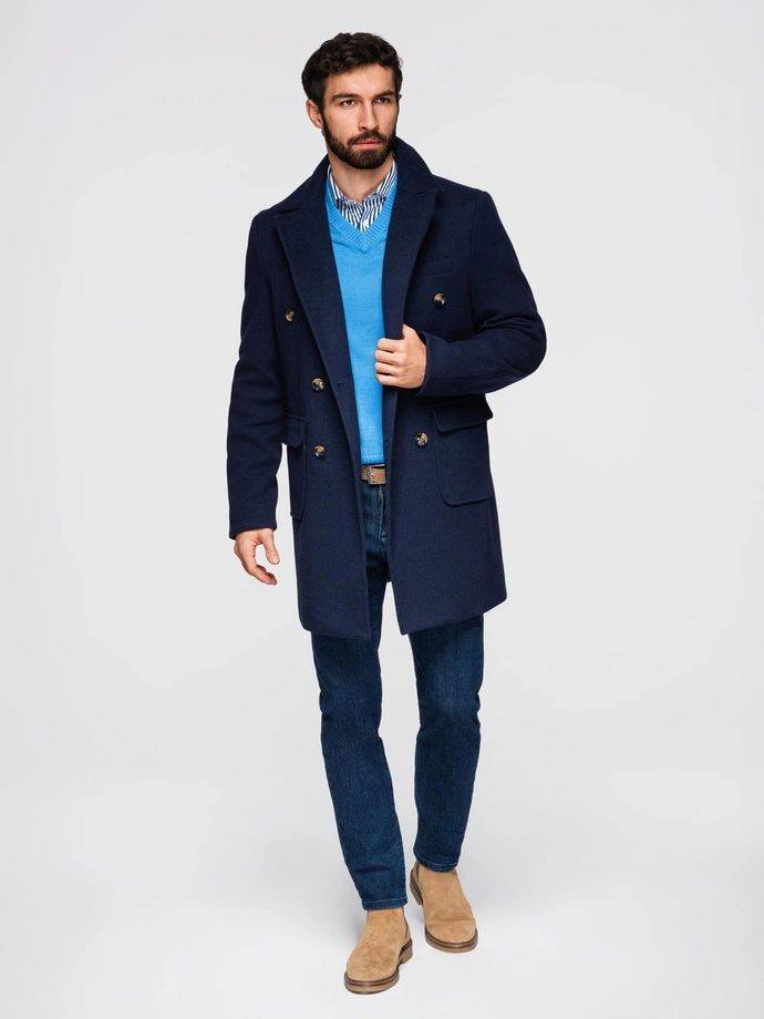 Timeless classics in their purest form! A seasonal coat from the Ombre Quintessence collection in muted colors will make any outgoing and informal set elegant. The appeal of this coat lies in its simplicity, subtly emphasized by tasteful details in the form of buttons with a marbled motif. The coat's formal character is also defined by a wide collar and a breast pocket