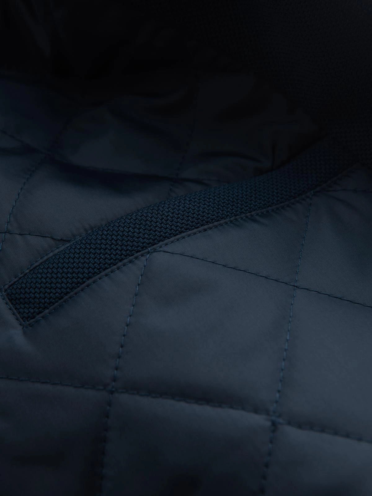 A lightly insulated jacket with a cut inspired by motorcycle style is sure to add a casual touch to any outfit. Style and functionality go hand in hand here, making the jacket more versatile. A large number of conveniently arranged pockets is one of the features of the biker cut, which also finds practical use on a daily basis. The visual effect is complemented by a structured fabric with a distinct weave, and decorative quilting on the shoulders adds to the overall character