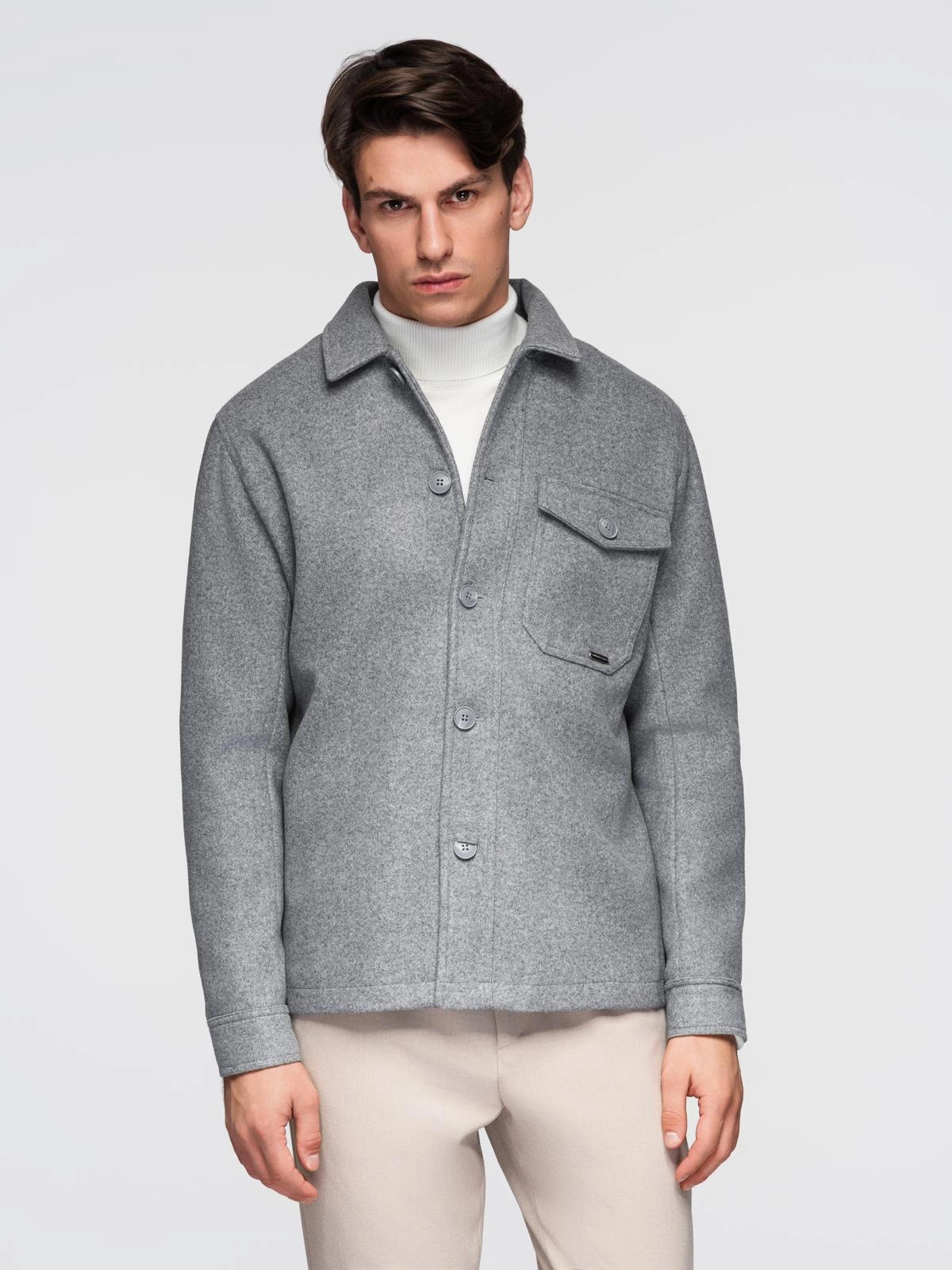 Men's flannel jacket from the Ombre Quintessence collection will add a dash of elegance to any outfit. Soft and nice-to-touch fabric with added viscose makes the jacket lightweight and casual to wear. While the large chest pocket draws special attention, the jacket is also enhanced with hidden side pockets and an interior pocket sewn into the lining. The jacket's design is inspired by shirt cuts, so it can be styled in many ways. It will be perfect for both casual and formal outfits