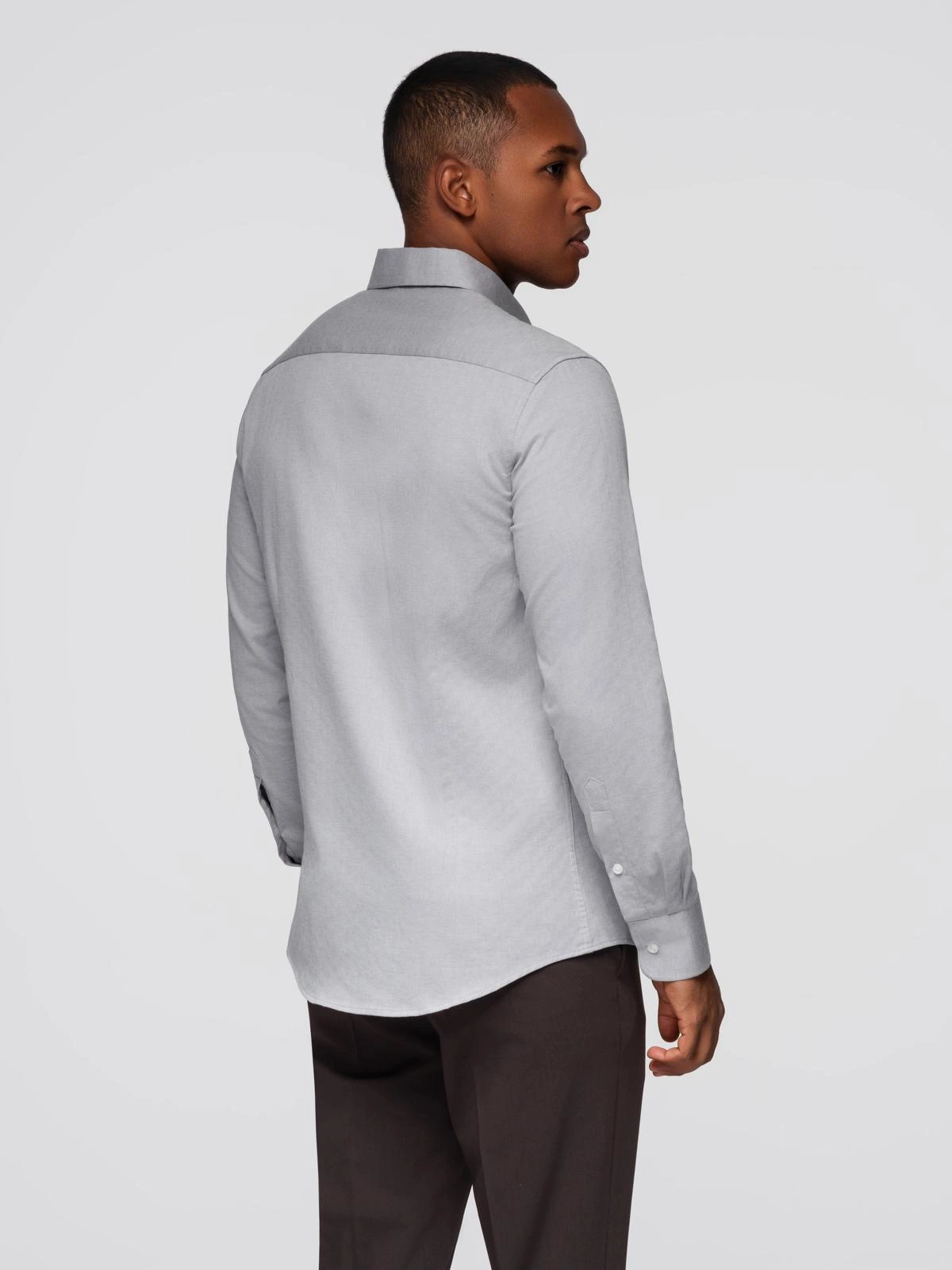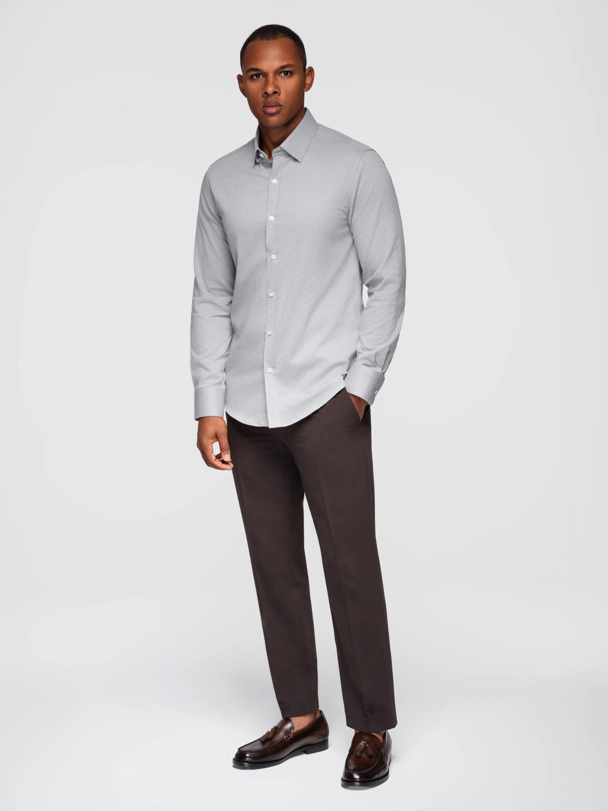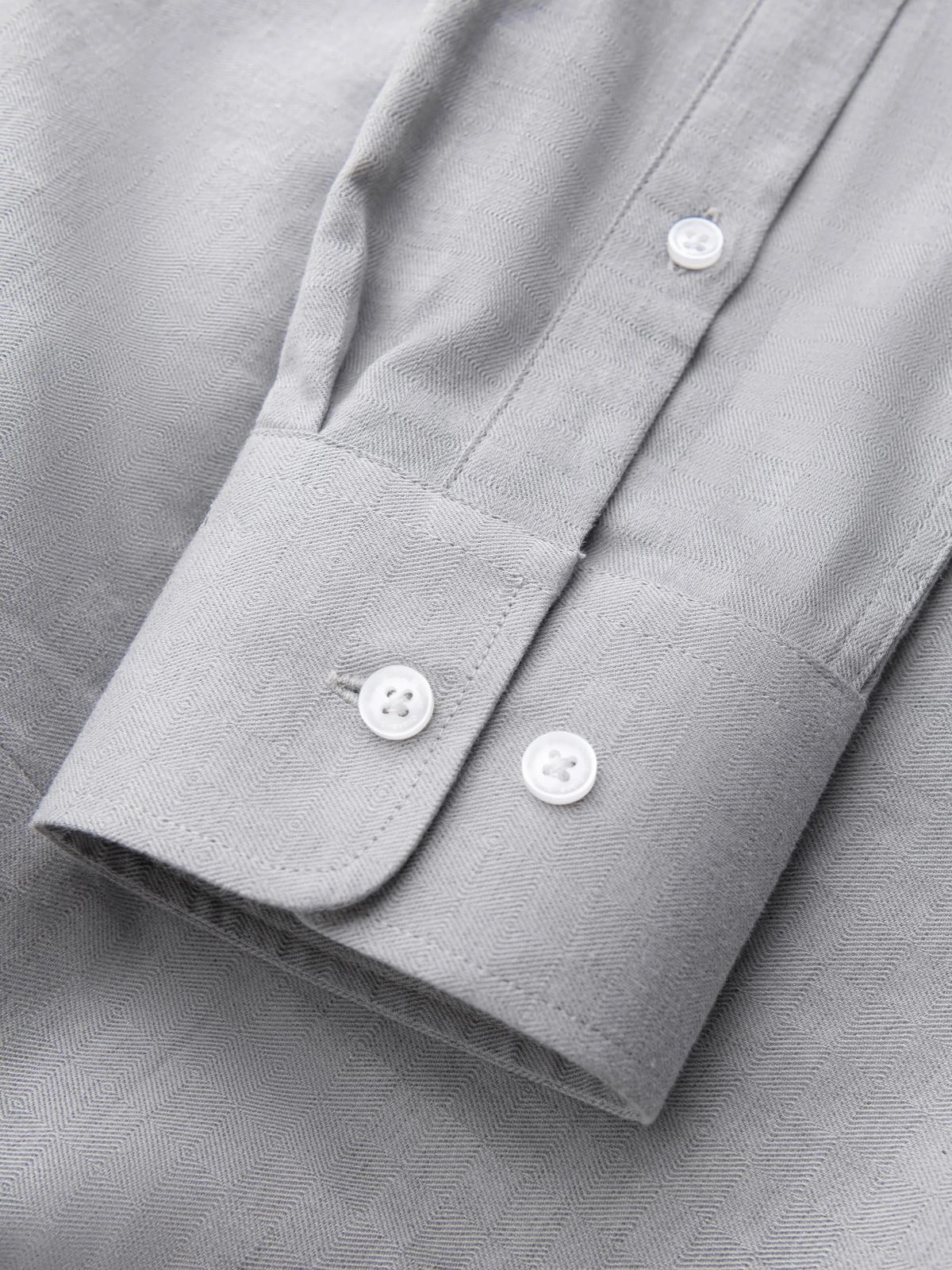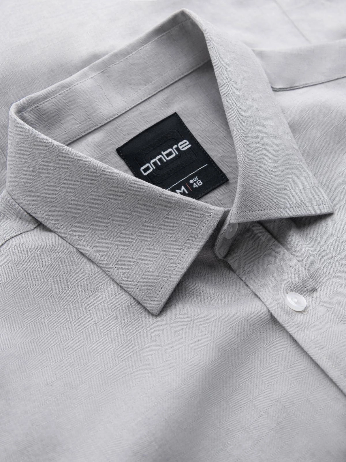 Casual and work ensembles will shine with this lightweight shirt with a decorative checkerboard weave. Slim-fit cotton shirt with spandex will effectively highlight the assets of a man's figure. Thoughtful placement of buttons at the sleeves and collar makes it easy to adjust the shirt to individual preferences. Shiny small buttons with an engraved logo subtly decorate the shirt, adding to its elegance