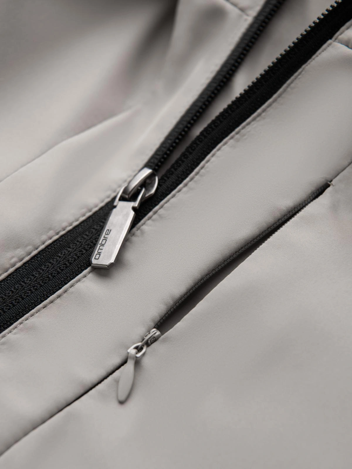 The casual lightweight jacket from the Ombre Quintessence collection will work especially well on rainy days. The technically reinforced fabric is less susceptible to water and is easy to maintain. Proper air circulation is ensured by a mesh lining. The jacket can be properly fastened at the neck - a collar with a stand-up collar and a comfortable adjustable hood provide additional protection from the wind