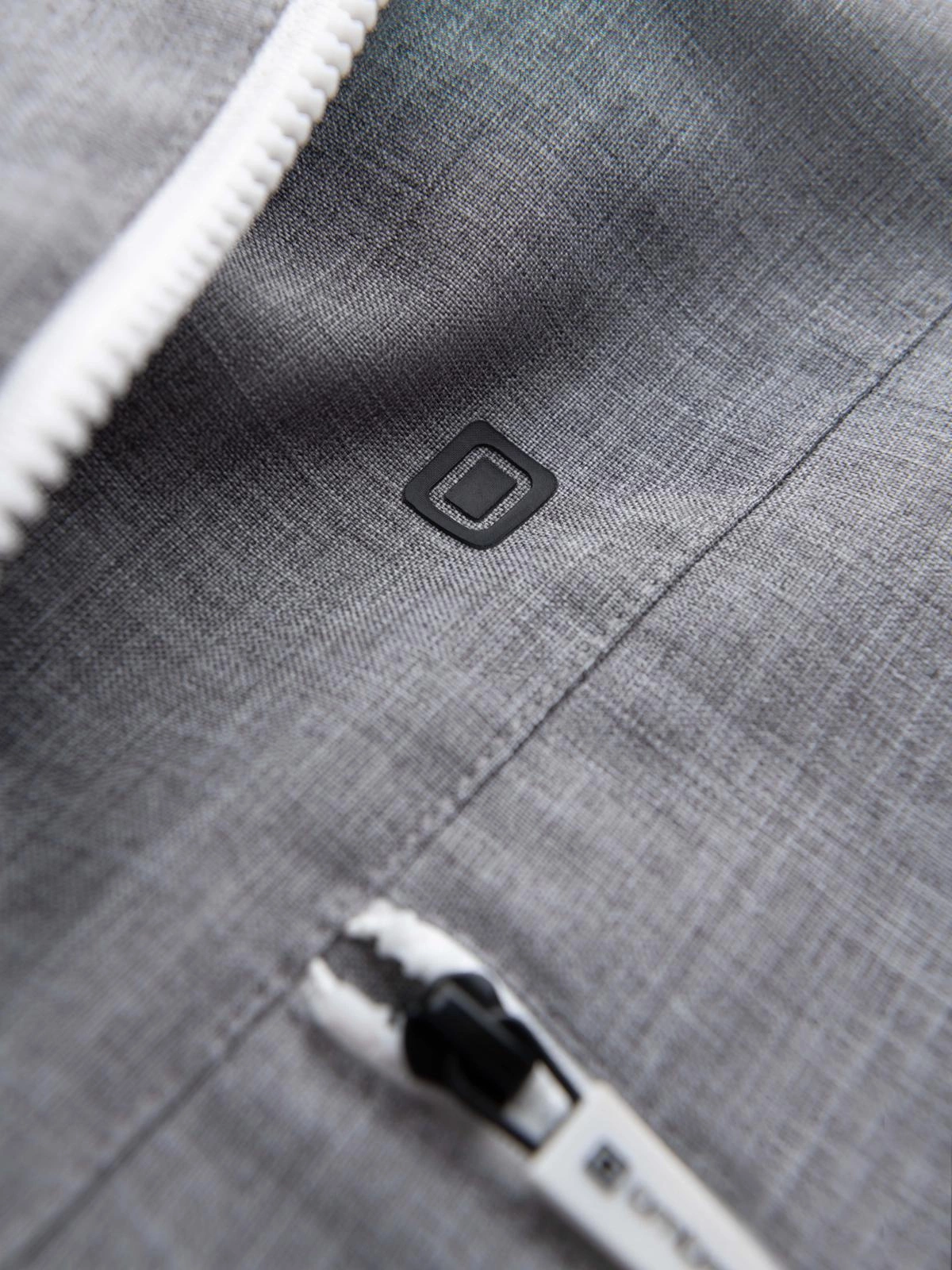 - rubber patch with branding at the bottom of the jacket