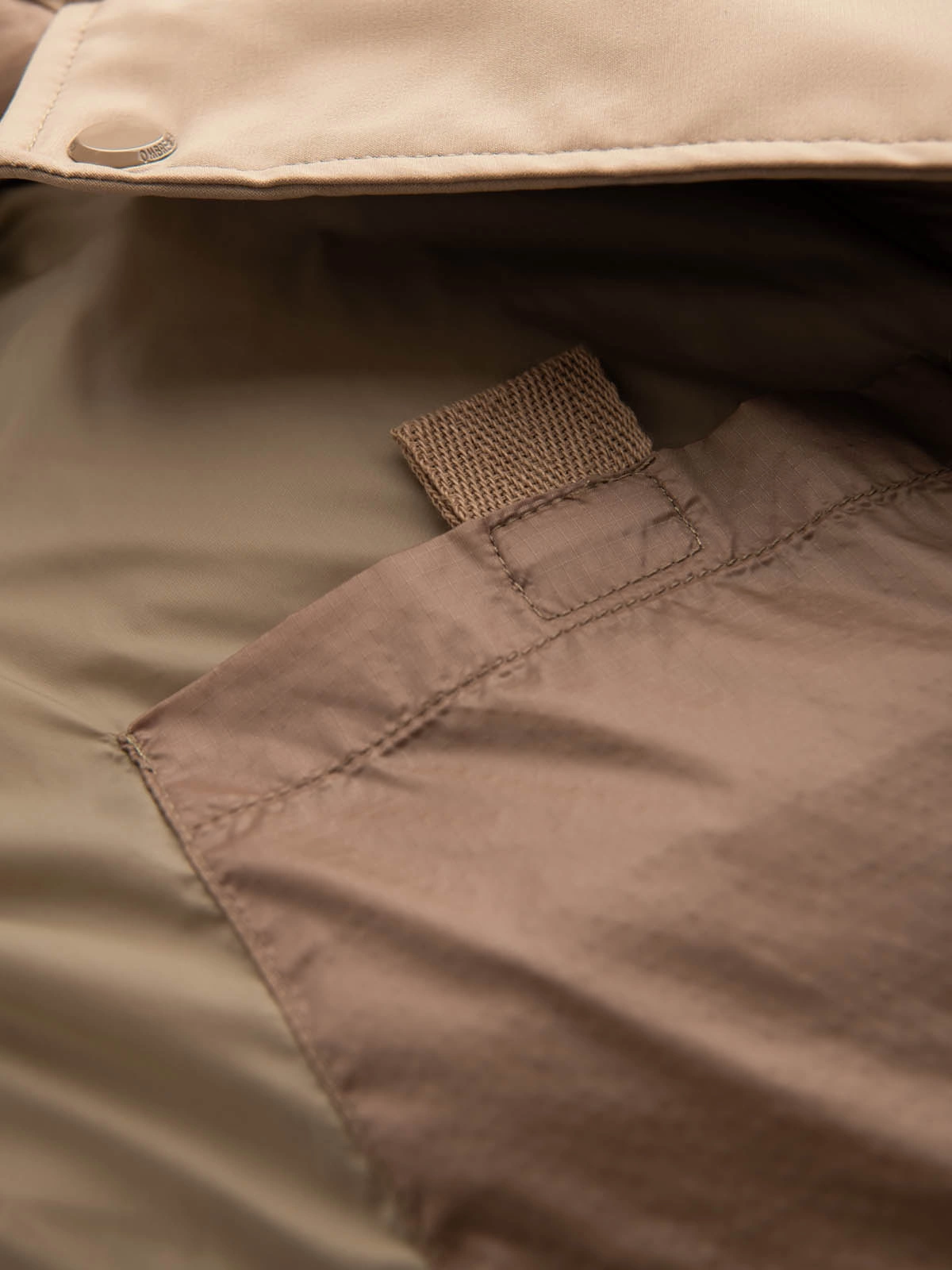This jacket is made for men who like to stand out without sacrificing functionality. Non-obvious solutions dominate, and large zippered pockets with hidden side slits are prominent. A double zipper and a placket with an additional snap closure provide freedom in terms of styling. A high hooded collar and sturdy synthetic fill keep you at a constant temperature