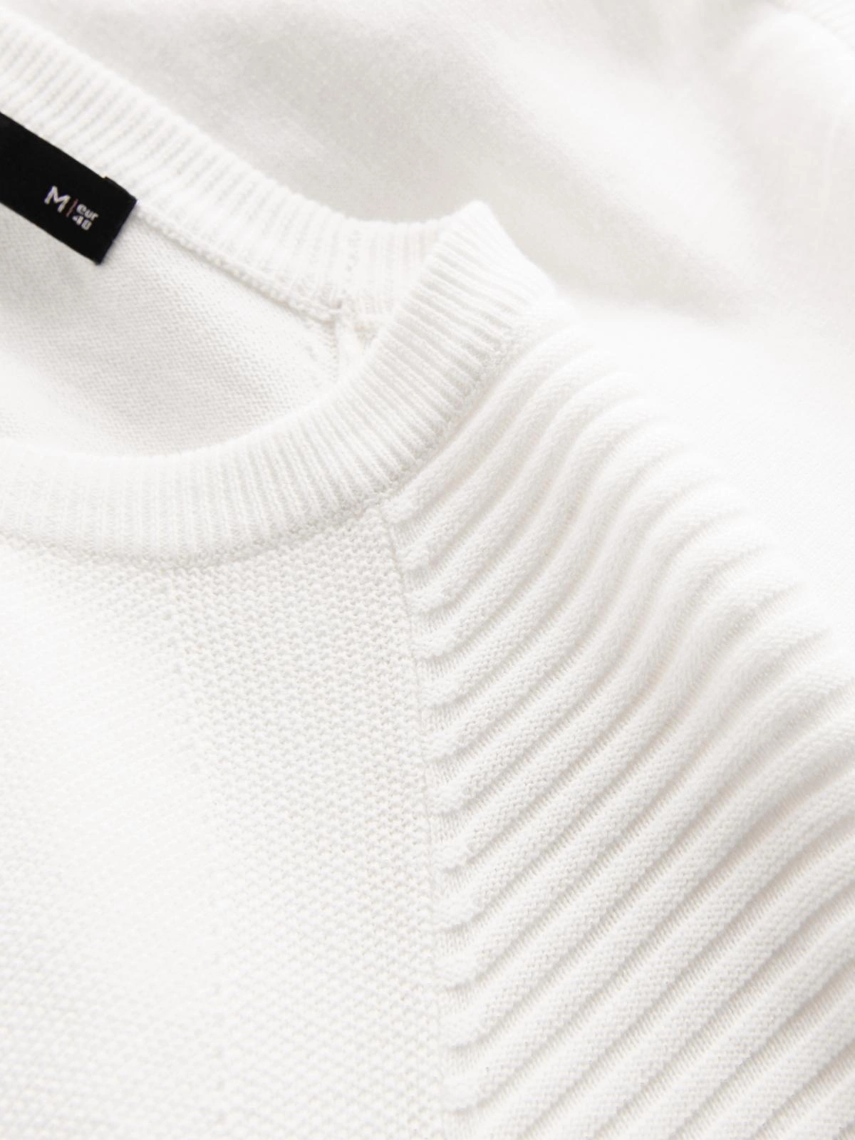 This sweater is made for men looking for uniqueness in everyday fashion. The unconventional design is the result of a creative combination of knitted fabrics with different structural weaves. Raglan sleeves with irregular ribbed stripes subtly decorate the sweater, giving it a multidimensional look. An interesting detail that stands out against the uniform color scheme is the logo on the bottom