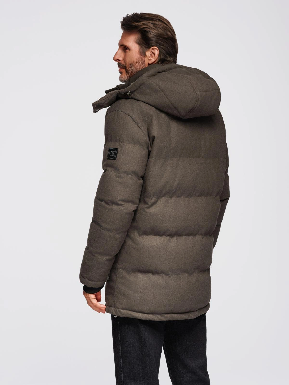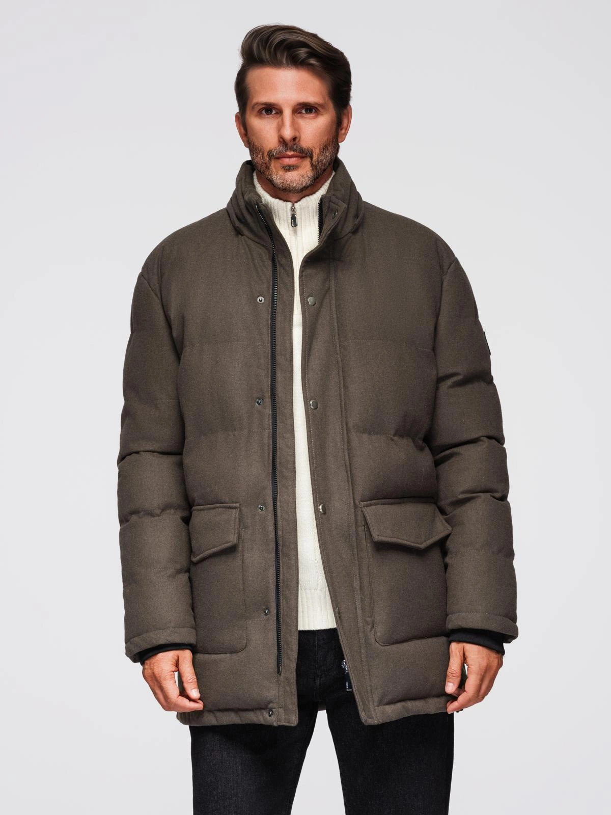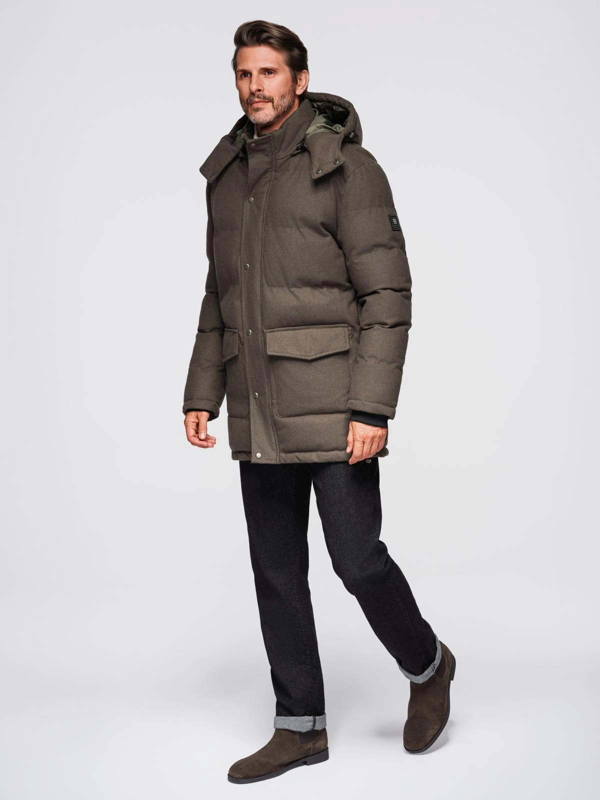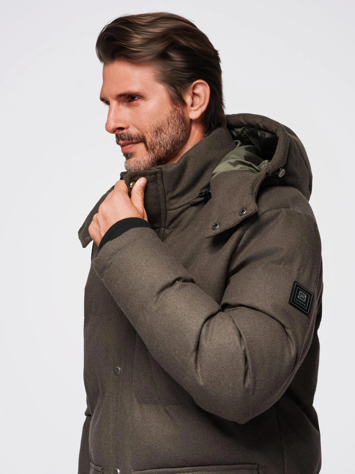 The wool parka jacket from the Ombre Quintessence collection will warm up even the biggest frostbite. The structured fabric with visible wool fibers and solid filling keeps you warm for a long time, giving you comfort especially in sub-zero temperatures. The jacket also has the advantage of large capacious pockets with flaps, testifying to the functional use of the garment. The jacket can be properly fastened at the neck, and the hood with patches allows you to effectively shield your face and neck from the cold