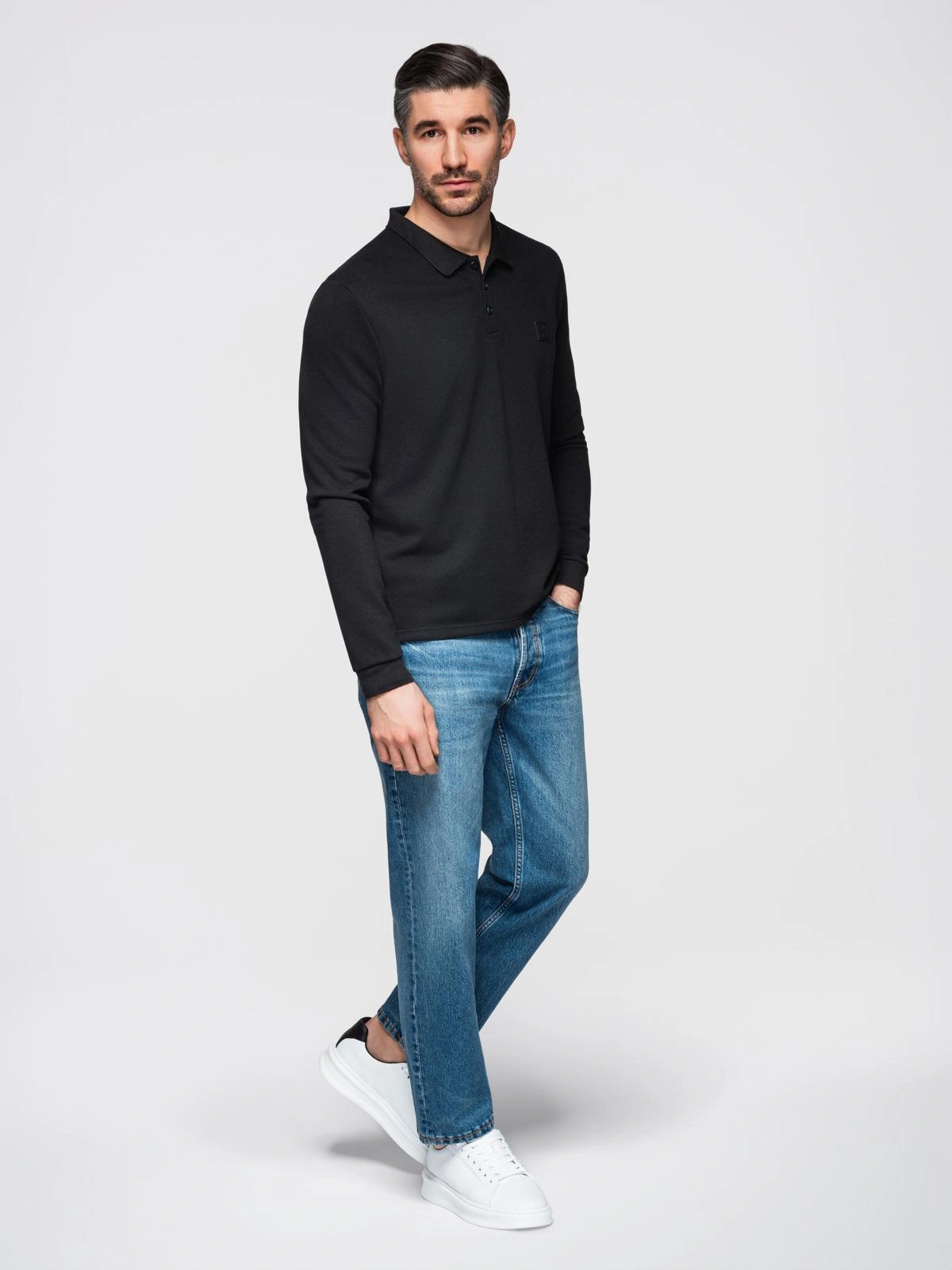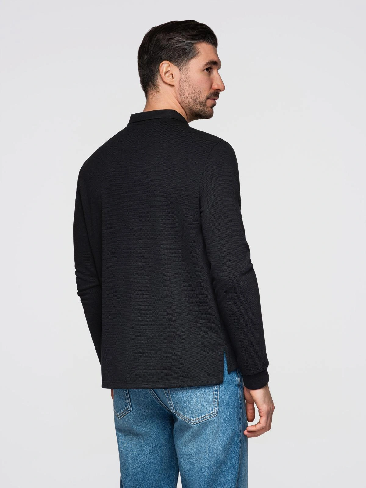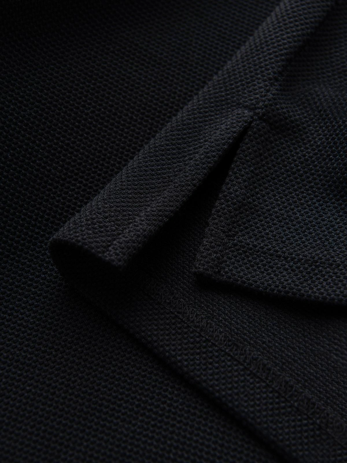 Elegant polo made of structured pique knit is a fashion proposition that fits perfectly into preppy and old money aesthetics. The structured knit with viscose in the composition makes the styling more refined. The shirt has slits at the bottom and a slightly elongated back, thanks to which it sits perfectly on the male figure, neatly covering up its imperfections. The ribbed trim on the sleeves and collar, as well as the emblem on the chest, gives it a slightly sporty touch