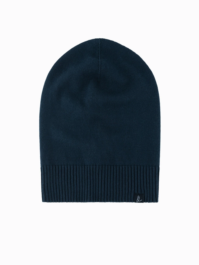 Men's cotton knit winter beanie hat - navy blue V4 OM-ACWH-0124
