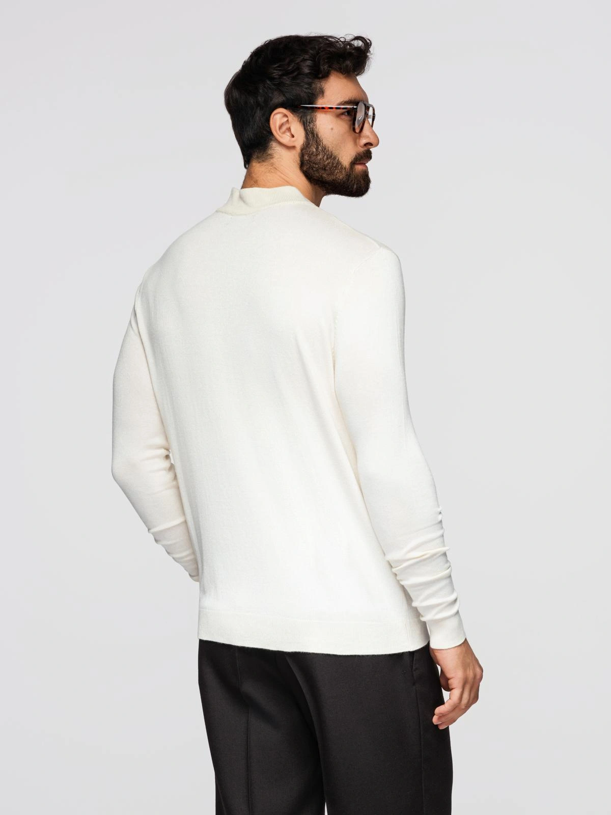 This solid half turtleneck will allow you to easily build a smart casual look. It looks great both with classic jeans and with a blazer. The sweater is smooth and pleasant to the touch thanks to a lightweight knit with viscose in the composition. The elastic material adapts to different types of silhouettes and ensures freedom of movement.