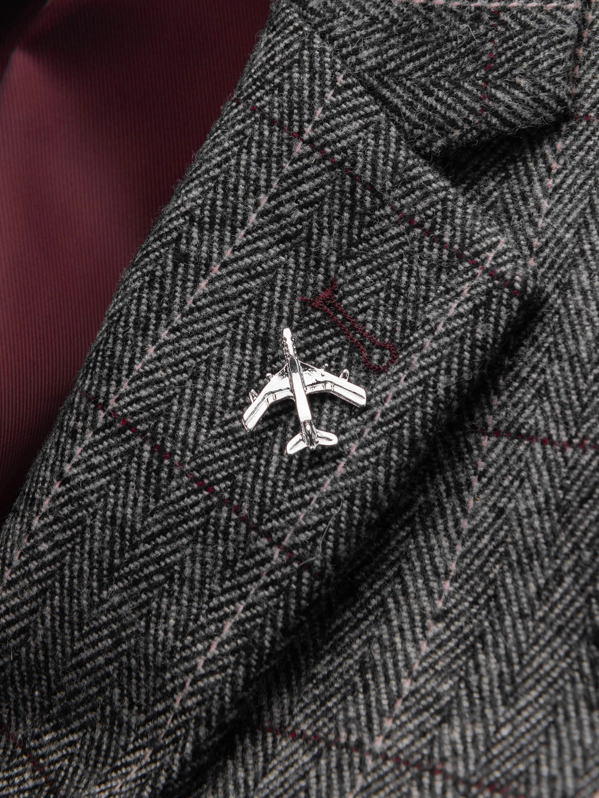 A metal clothing pin in the shape of an airplane will appeal to more than just aviation fans. This shiny silver-colored accessory can be clipped into both the lapel of a jacket and into a backpack. The distinctive pin will emphasize the individuality of the wearer, adding a unique touch to styling.