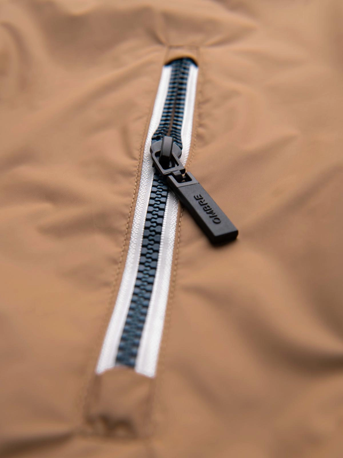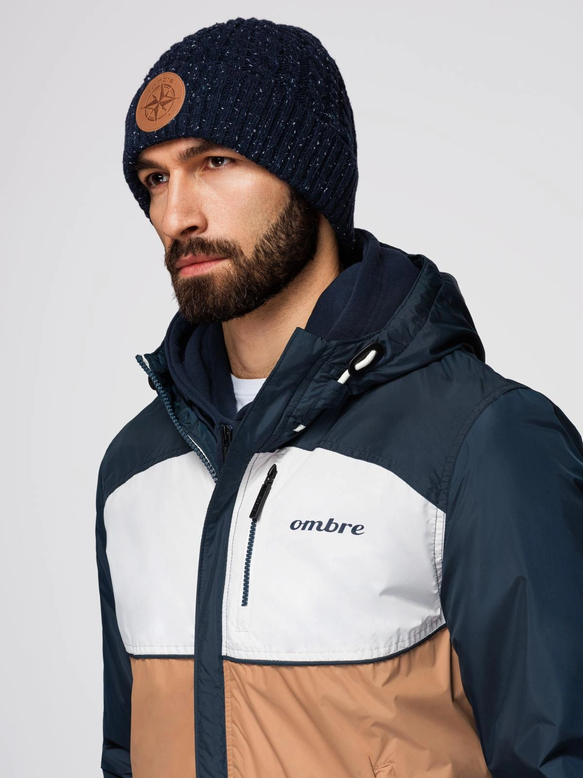 The storm jacket with warm fleece inside will appeal especially to men with an active lifestyle. It's an excellent choice for changeable weather - the sturdy fastening and the outer material with technical properties give it practical use. It will work well in outdoor conditions, as well as in the city or while traveling. Supporters of convenience will also appreciate the large number of pockets and adjustable hood.