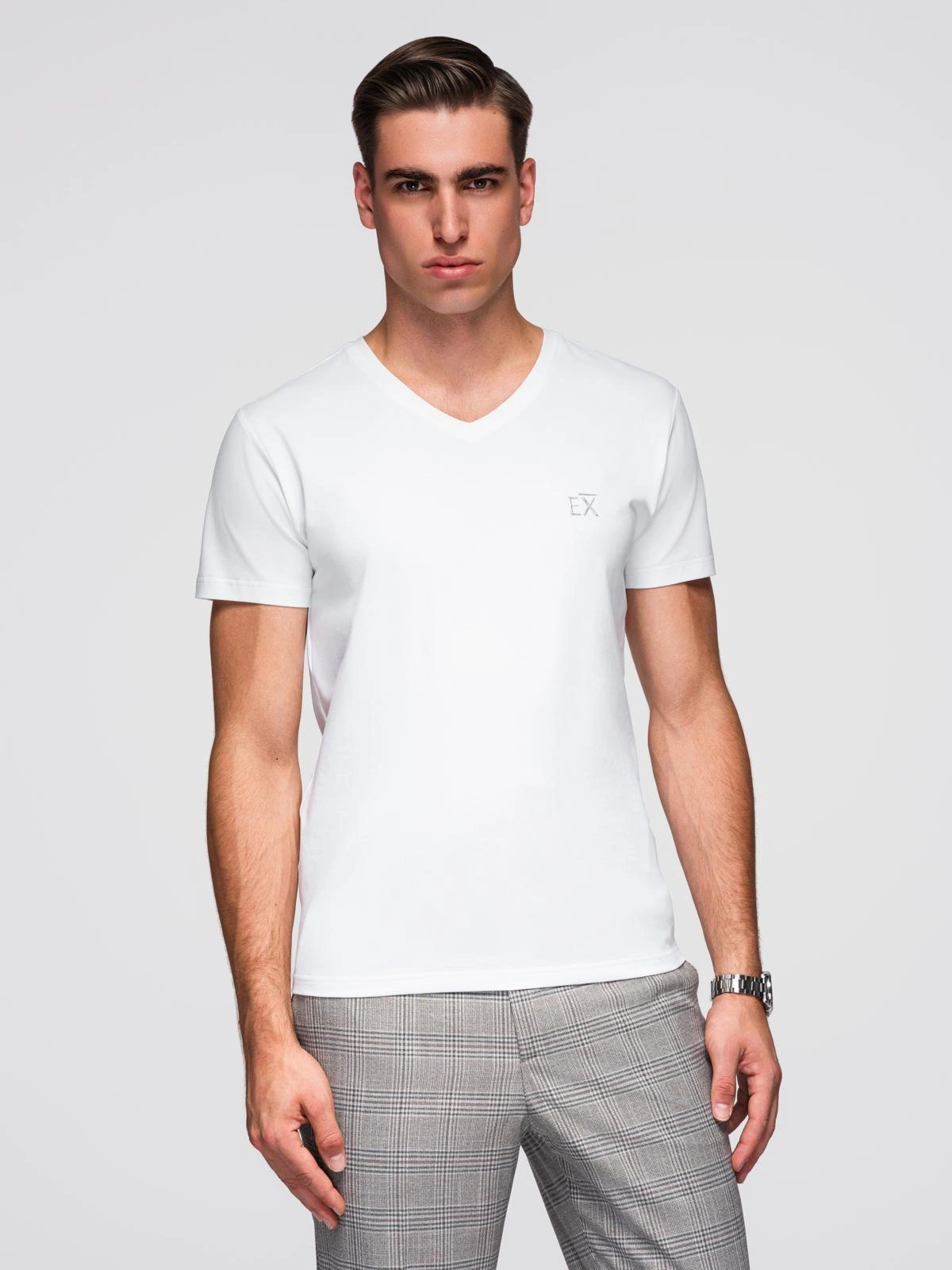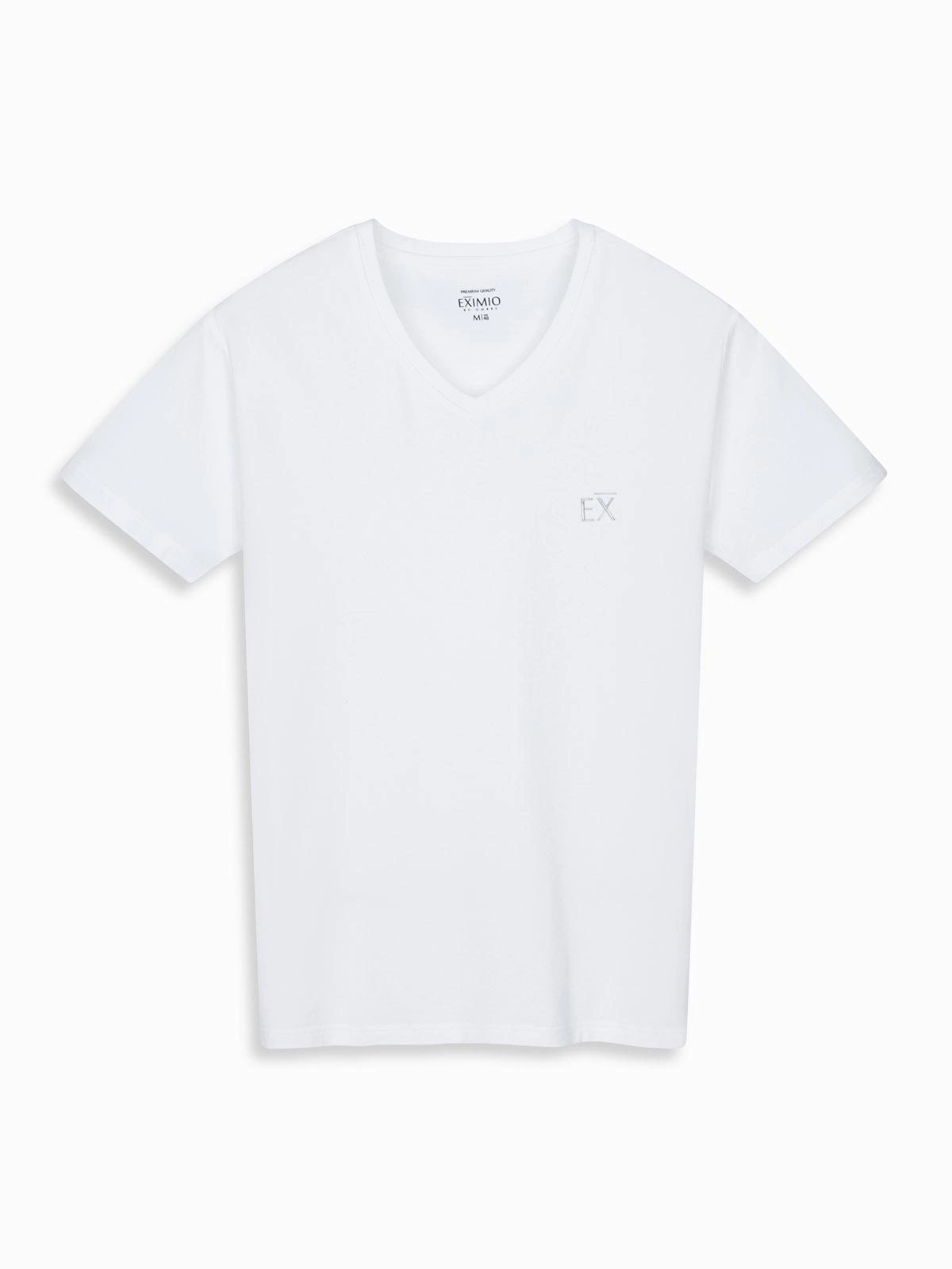 This basic T-shirt with a v-neck will appeal to men looking for practical cuts for their everyday closet. It is sure to become a staple of many timeless casual outfits. It is made of smooth and pleasant to the touch knit fabric, which provides full freedom of movement. The simple design of the shirt is diversified by a subtle print on the chest, which gives it a unique twist.