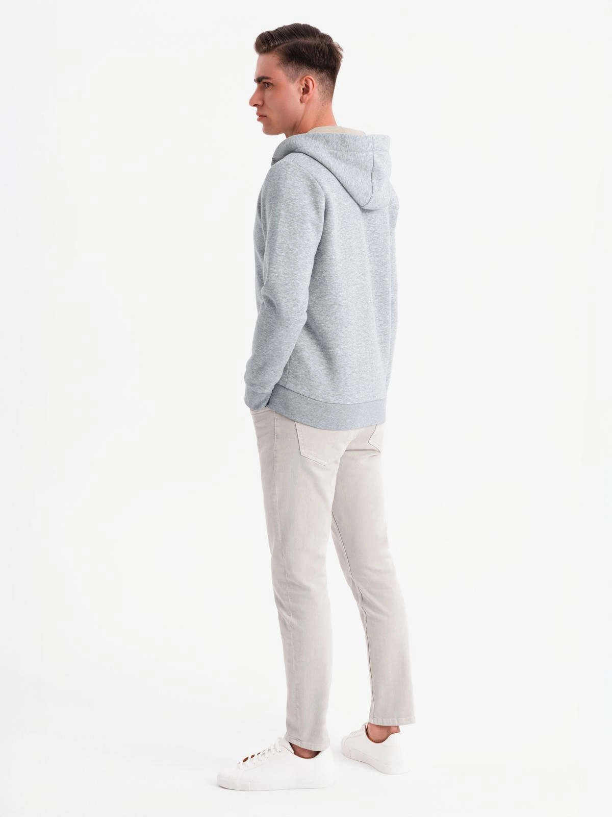 This hooded sweatshirt is characterized by a unique form of fastening. It is made of a thick knit fabric with a soft finish, so it will find practical use all year round. Depending on the weather and temperature, it will work as a warm layer of clothing, as well as an outer garment. Stylish buttons play both a utilitarian and decorative role, adding distinctiveness to the overall composition.