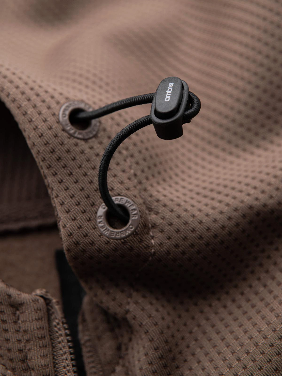 Men's lightweight jacket of combined materials with hood and decorative quilting - light brown V2 OM-JANP-0160