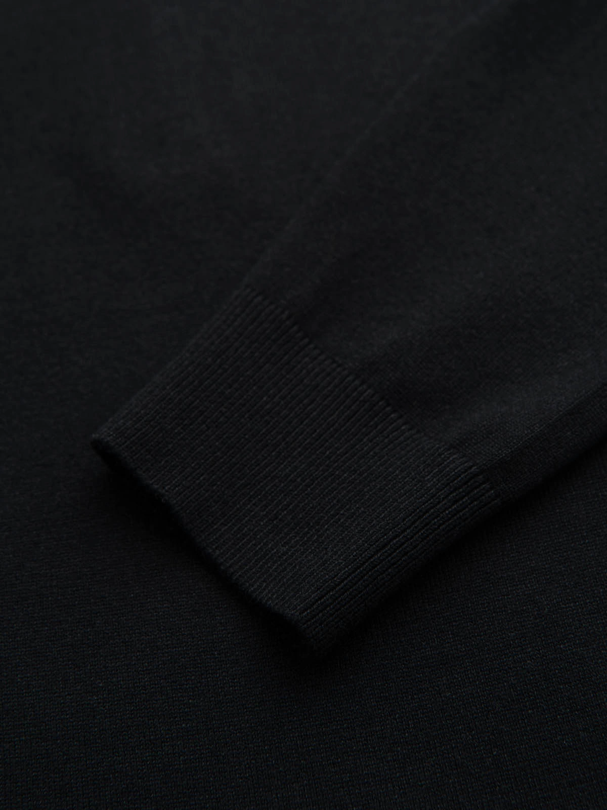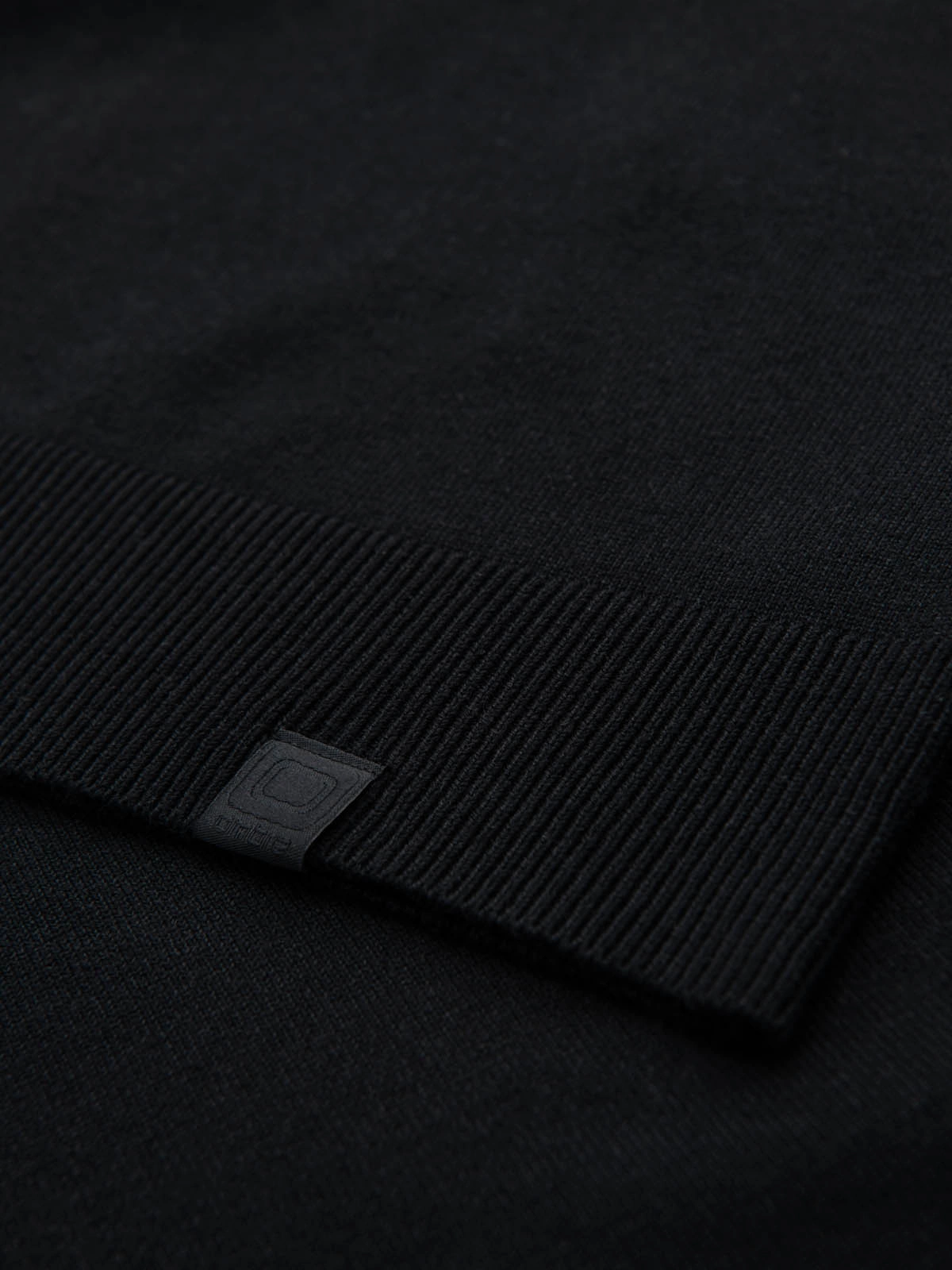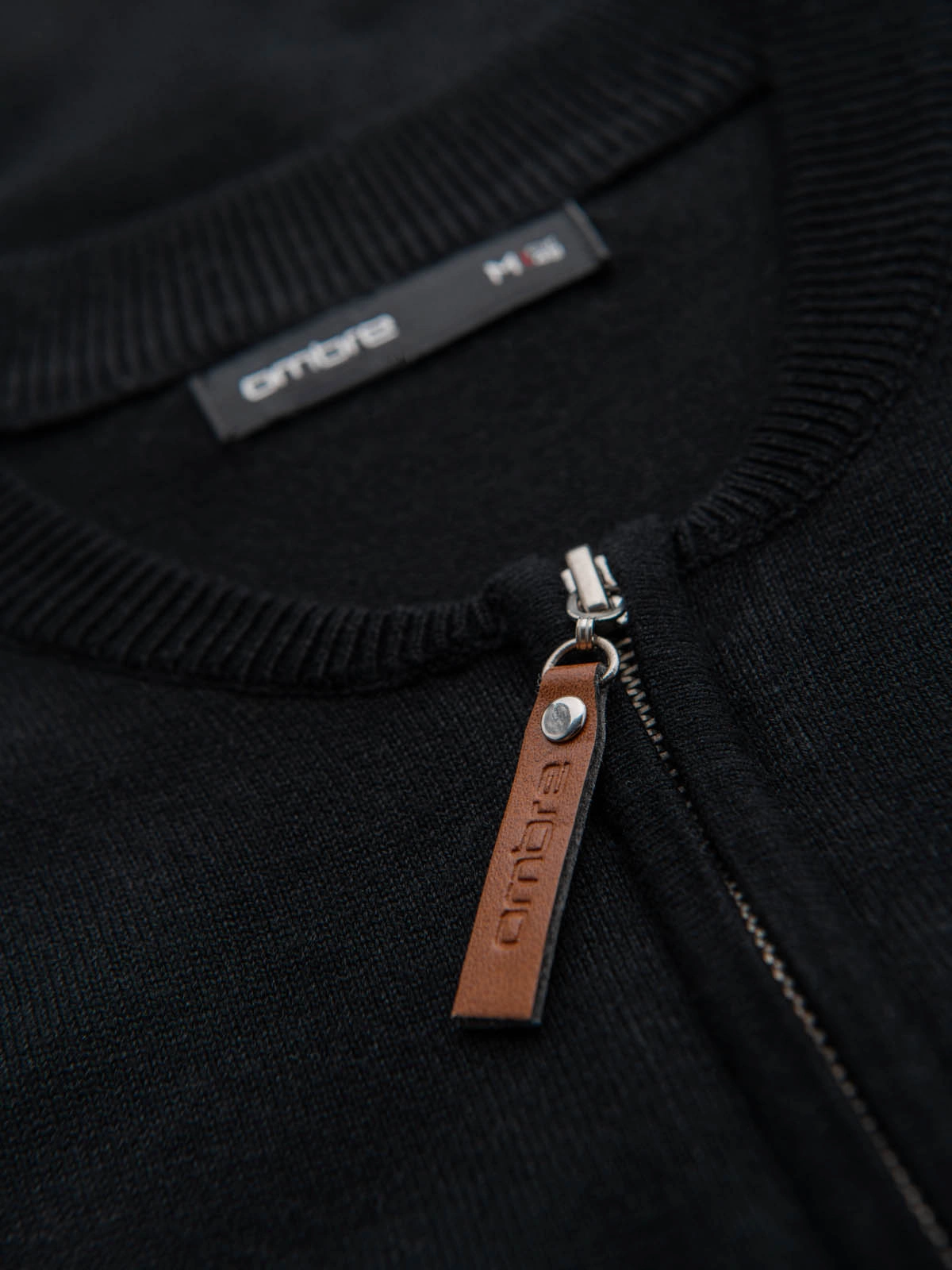 Smooth sweater with decorative zipper at the neck will add a touch of elegance to any styling. The advantage of this model is the expressive details in eco-leather, which emphasize its unusual design. The stylish front fastening allows for many interesting fashion interpretations. Viscose in the composition makes the sweater soft and pleasant to the touch.