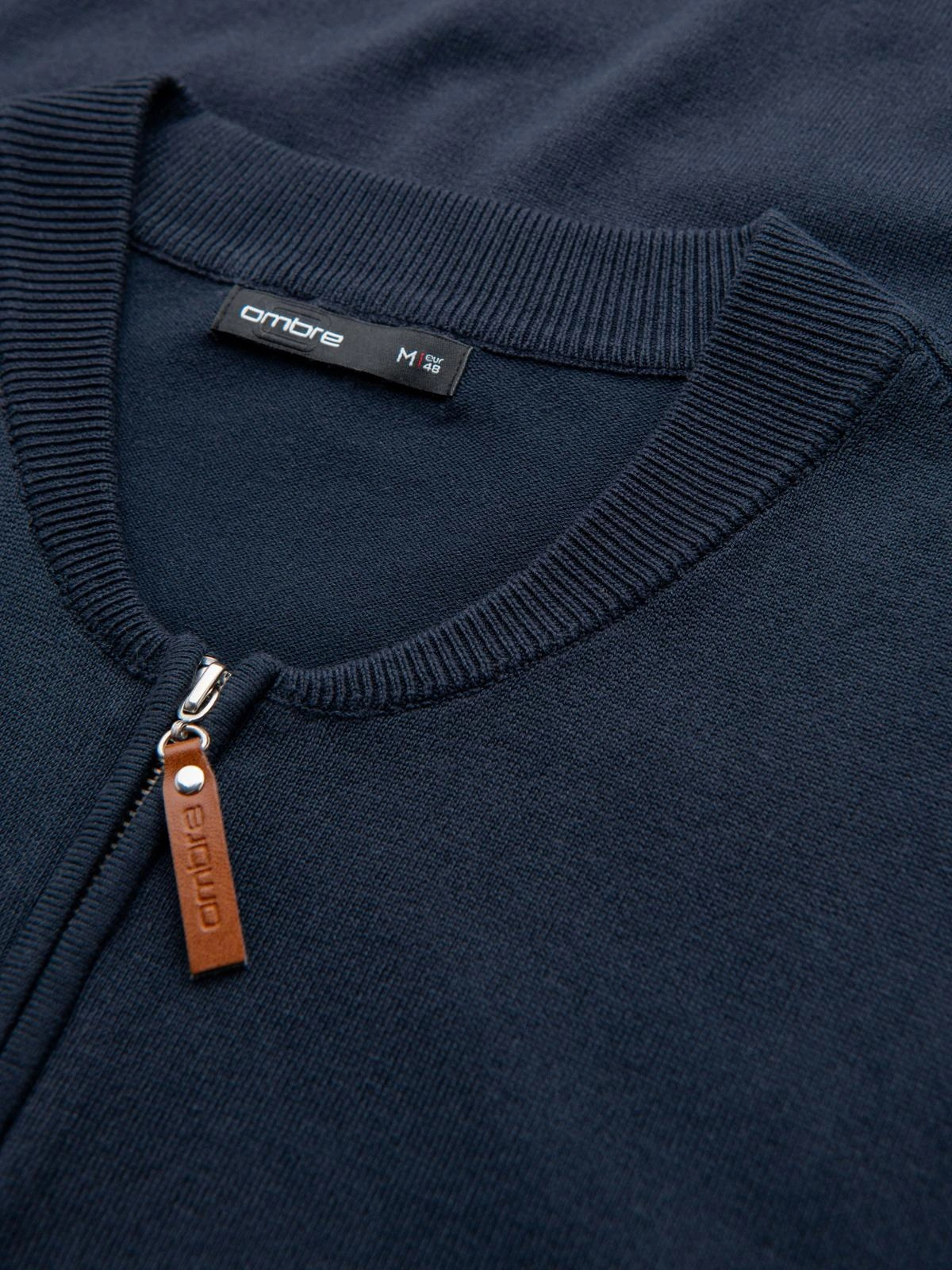 Smooth sweater with decorative zipper at the neck will add a touch of elegance to any styling. The advantage of this model is the expressive details in eco-leather, which emphasize its unusual design. The stylish front fastening allows for many interesting fashion interpretations. Viscose in the composition makes the sweater soft and pleasant to the touch.