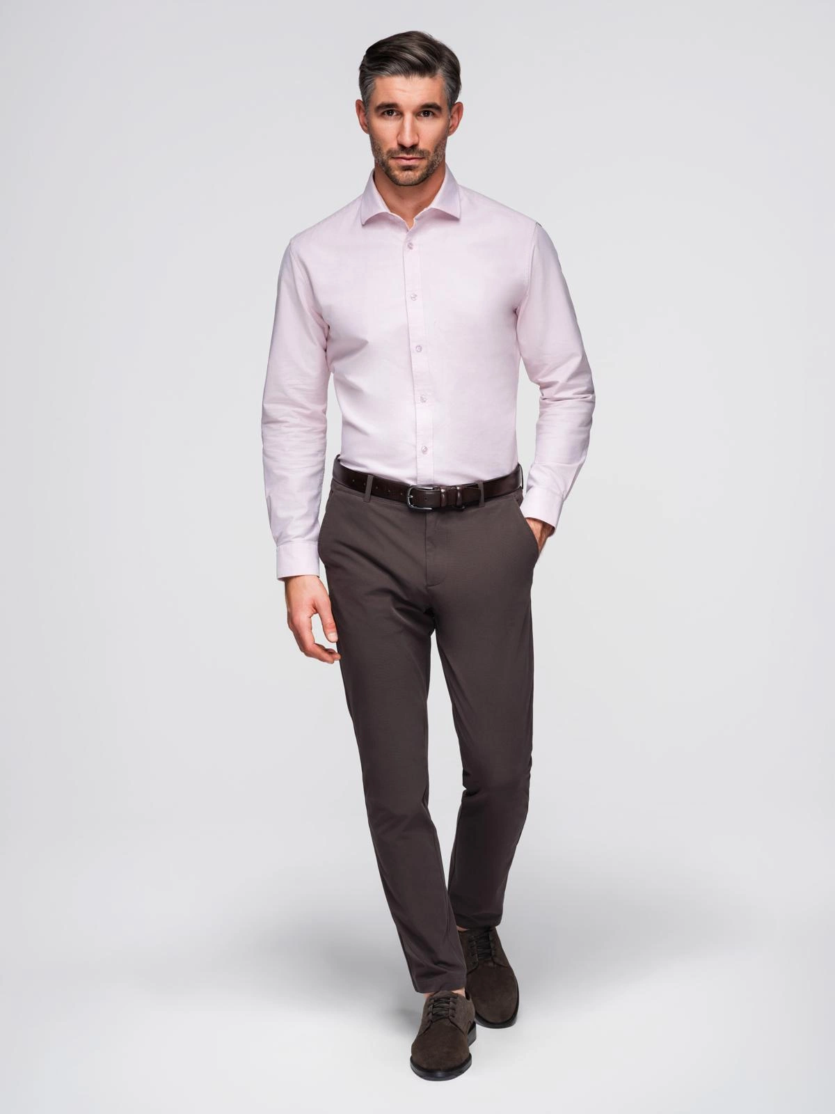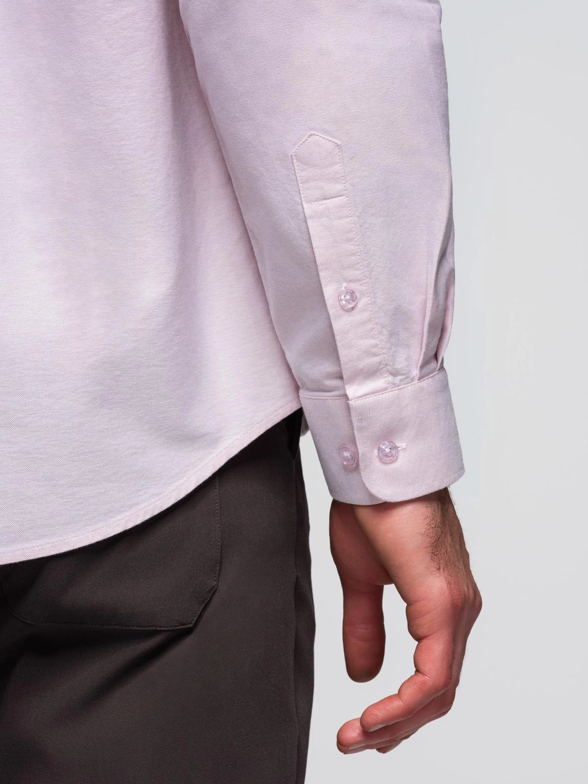 Cotton oxford shirt in pastel colors is sure to enliven elegant and semi-formal styling. The straight cut with a rounded bottom and free adjustable sleeves will allow it to be easily adjusted to suit men's comfort and needs. The fabric with a distinct characteristic weave subtly decorates the shirt, adding to its class. It is an ideal choice for sets maintained in classic colors.