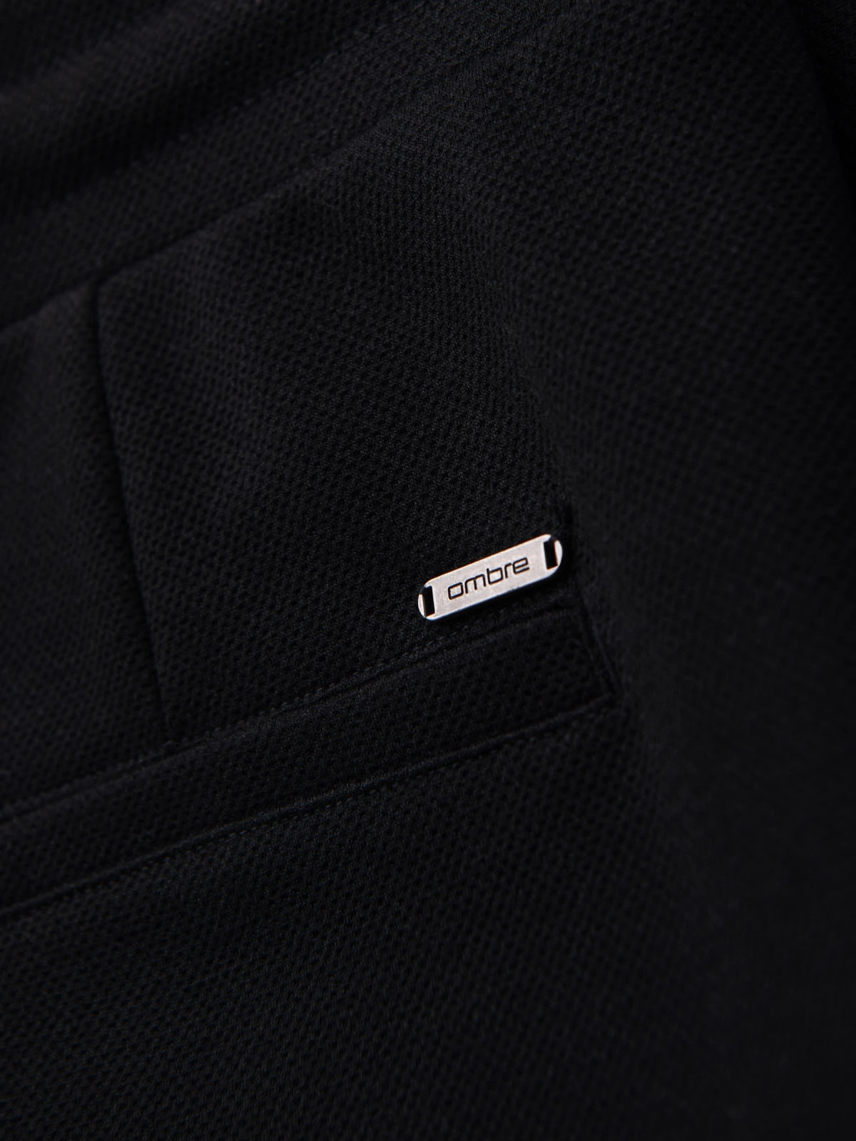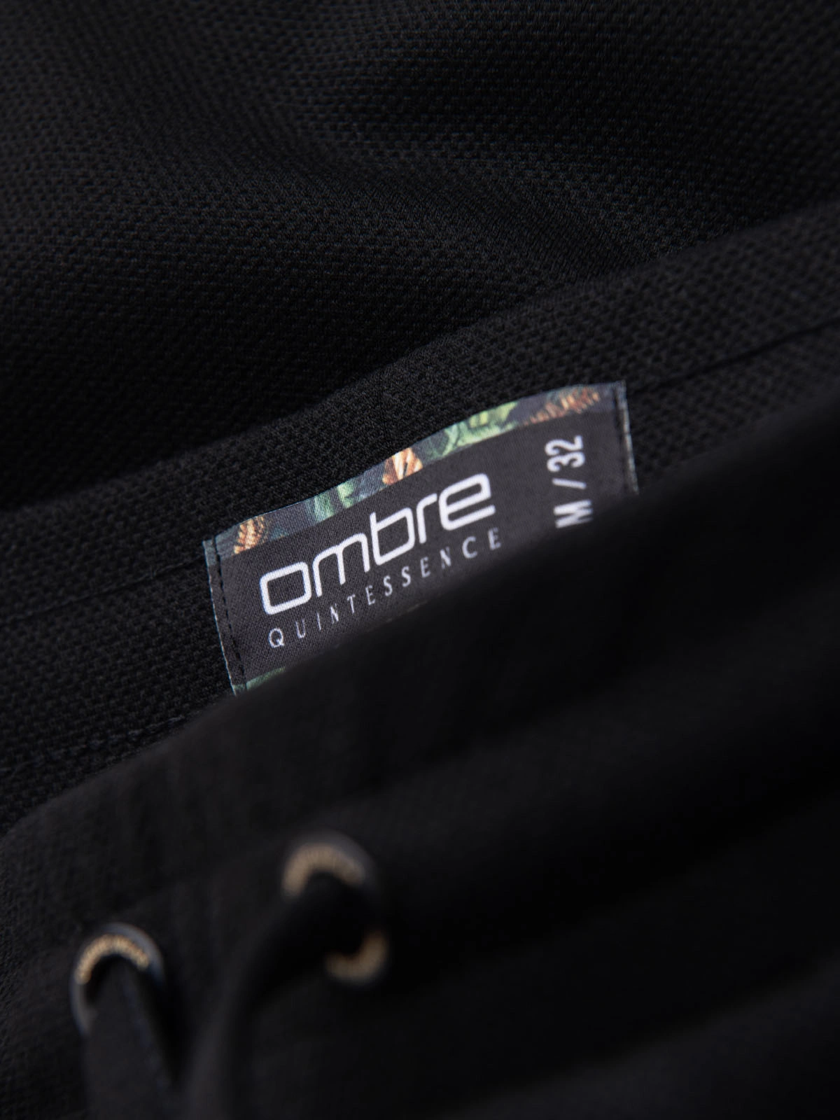 Men's pre-knee-length shorts from the Ombre Quintessence collection will fit perfectly with casual outfits. Uniform color and classic cut are highlighted by delicate details, giving the shorts a unique character. The mixed-fiber knit is responsible for the tactile texture of the material. The turned-up leg trim and pleats resembling back pockets and opening add to the style. The whole is completed with a decorative drawstring at the waist and subtle branding.