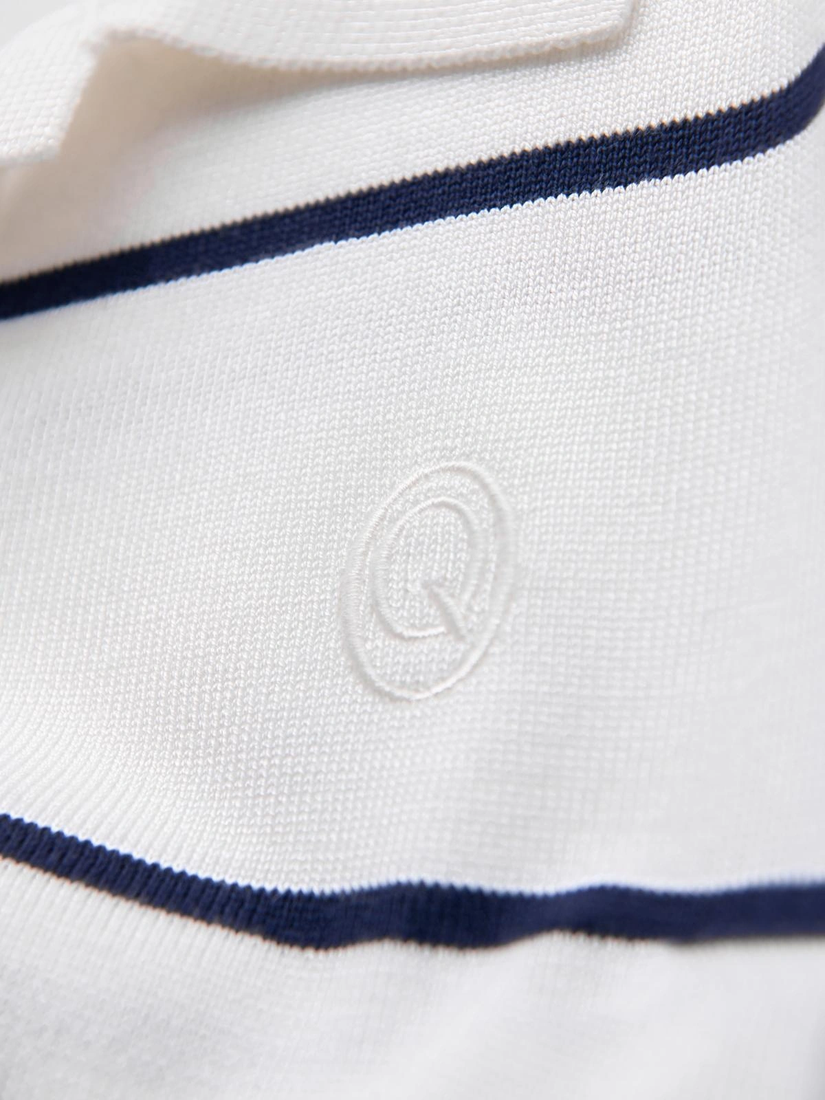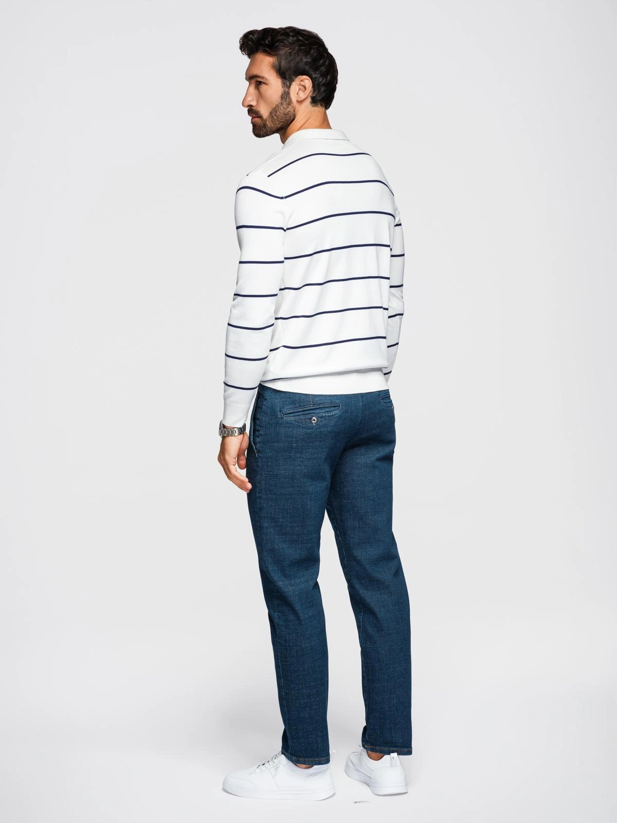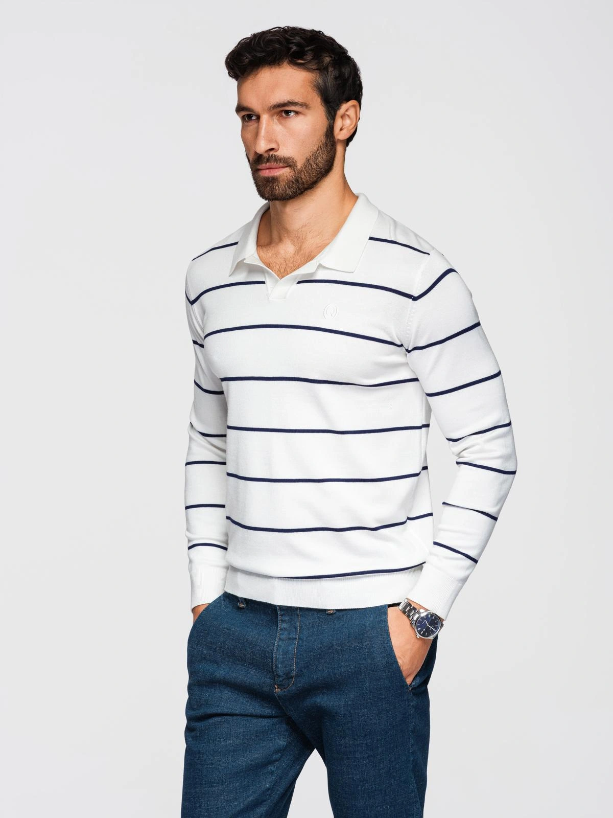 Striped longsleeve with polo collar is a good way to break the fashion routine in styling in smart casual aesthetics. Contrasting stripes will match sets with chinos or a blazer, giving the whole look a casual chic look. The fine viscose knit adds elegance and refinement to the shirt, while the embroidery on the chest emphasizes the stylish character of the longsleeve. This makes it an ideal choice for work or family gatherings.