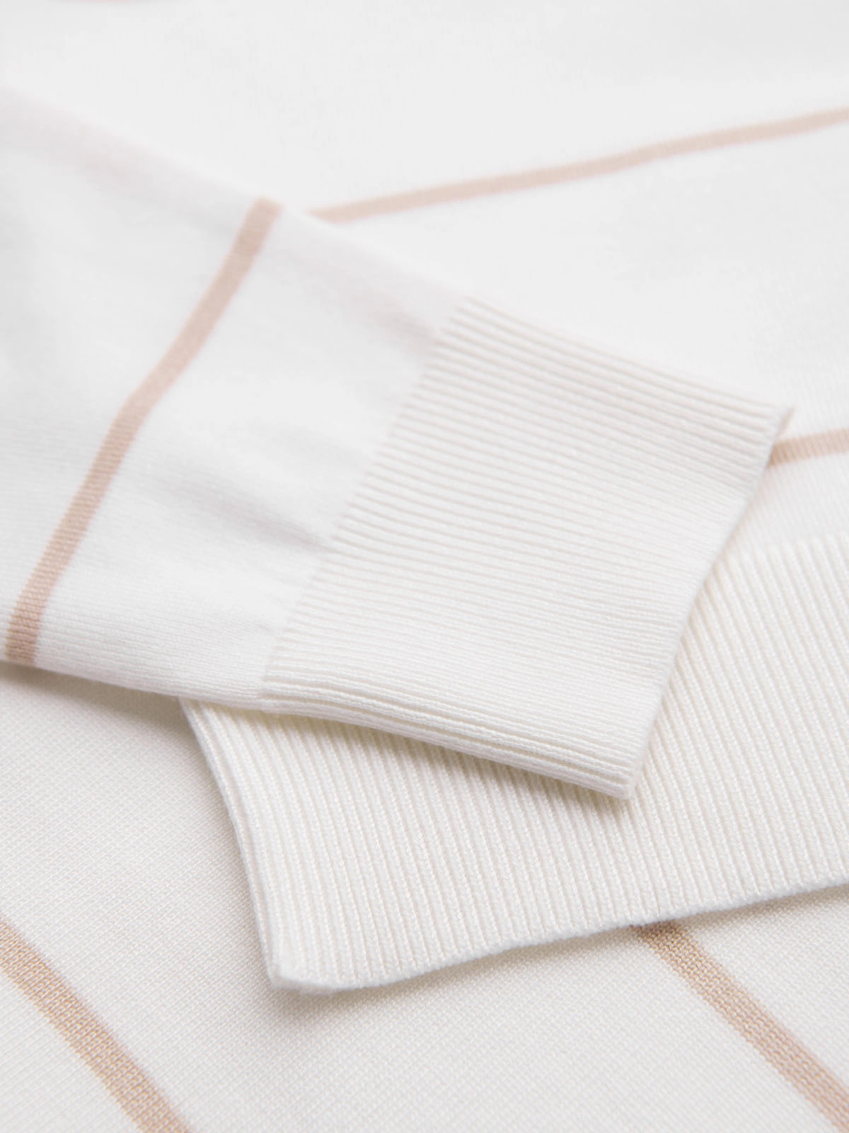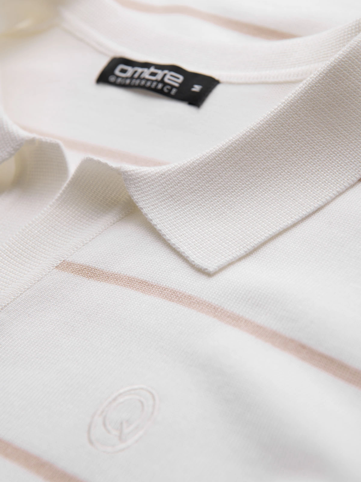 Striped longsleeve with polo collar is a good way to break the fashion routine in styling in smart casual aesthetics. Contrasting stripes will match sets with chinos or a blazer, giving the whole look a casual chic look. The fine viscose knit adds elegance and refinement to the shirt, while the embroidery on the chest emphasizes the stylish character of the longsleeve. This makes it an ideal choice for work or family gatherings.