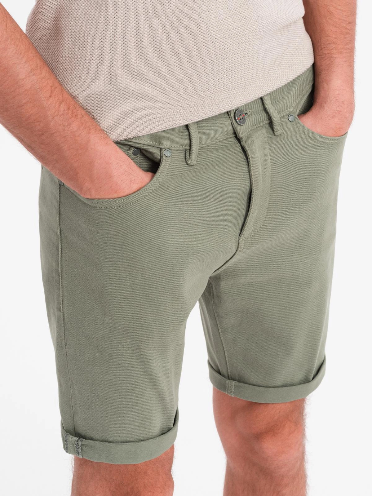 These stylish shorts from the Ombre Denim collection are the perfect choice for warm summer days. The modern cut with a folded leg, refined details and comfortable material create a combination of functionality and fashionable style. This is a model that will work well both in urban styling and in a casual edition for warmer days.
