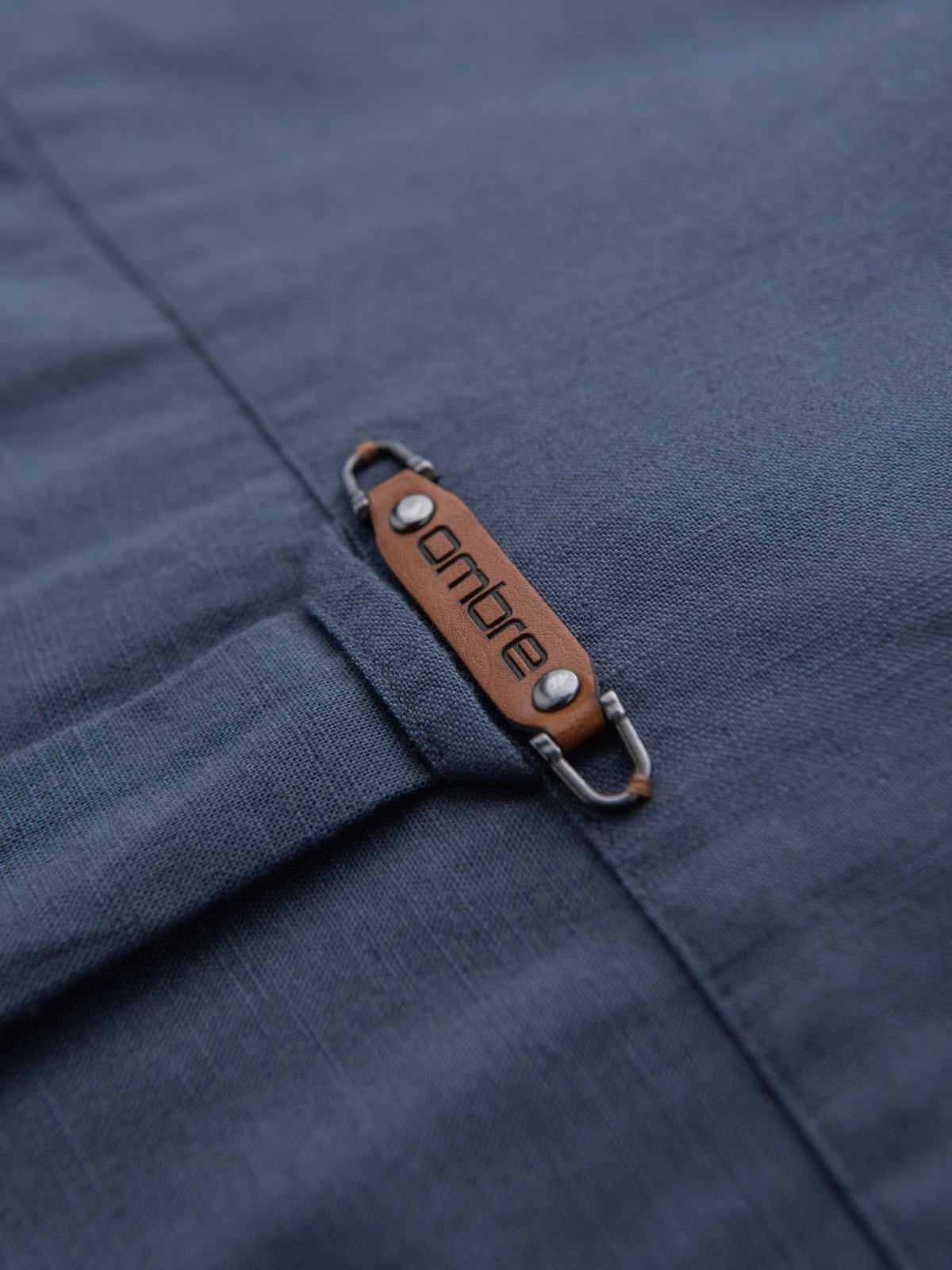 Men's regular-fit shirt made of airy cotton-linen fabric, designed for everyday comfort and timeless elegance. The classic collar and rounded hem emphasize the formal but versatile nature of the model. Subtle details, such as logo buttons, double chest pockets and a decorative faux leather patch on the back, create a cohesive, polished look perfect for the spring-summer season.