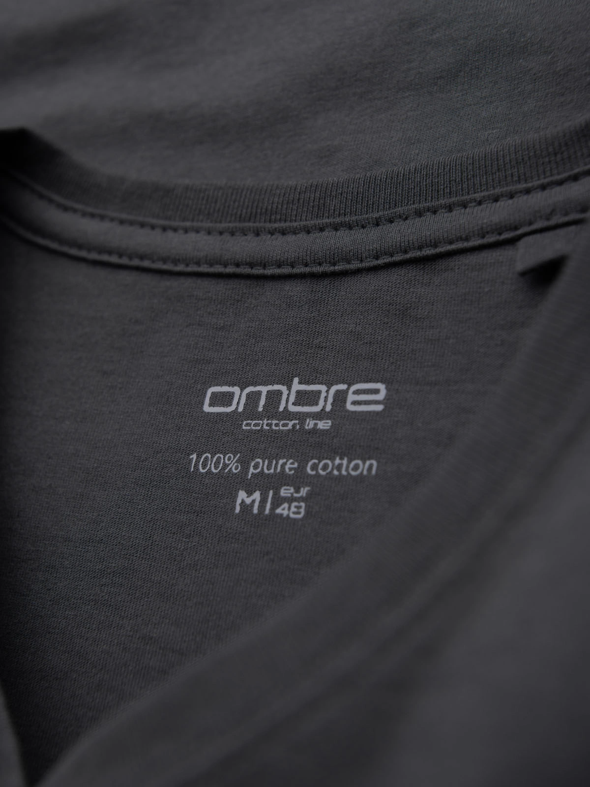 This cotton t-shirt with a heart neckline is a staple of diverse men's styling. It's a timeless model that is invariably popular among men through its wide fashion appeal and functionality. It is made of jersey cotton, which makes the shirt soft and pleasant to the touch. The straight cut makes the t-shirt lay on the body like a second skin, emphasizing the assets of the silhouette.