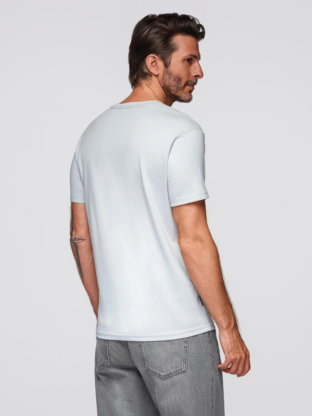 This cotton t-shirt with a heart neckline is a staple of diverse men's styling. It's a timeless model that is invariably popular among men through its wide fashion appeal and functionality. It is made of jersey cotton, which makes the shirt soft and pleasant to the touch. The straight cut makes the t-shirt lay on the body like a second skin, emphasizing the assets of the silhouette.