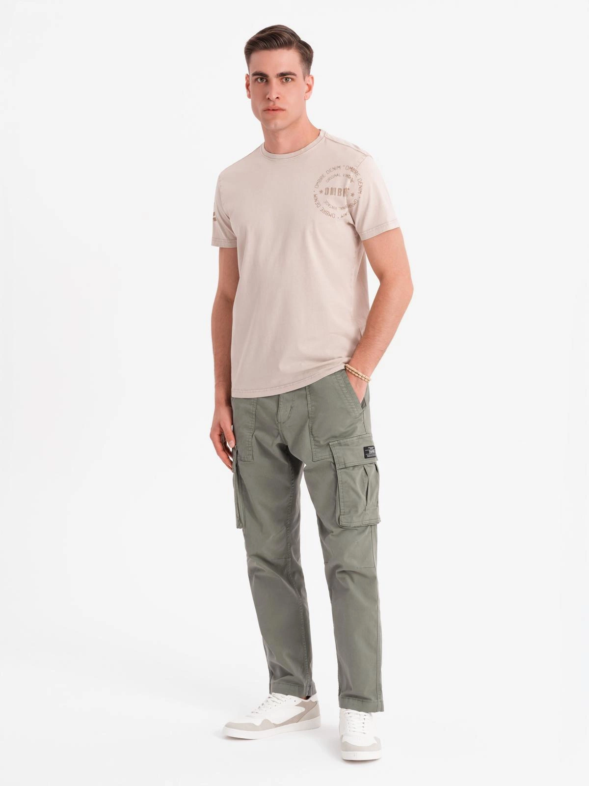 The men's T-shirt combines the comfort of a classic regular fit with the unique character of military-style prints. Soft single jersey knit fabric with enzyme wash effect gives the whole thing a slightly vintage look. Ideal for everyday wear for men who appreciate casual and original style. It goes great with both shorts, jeans and cargo pants.