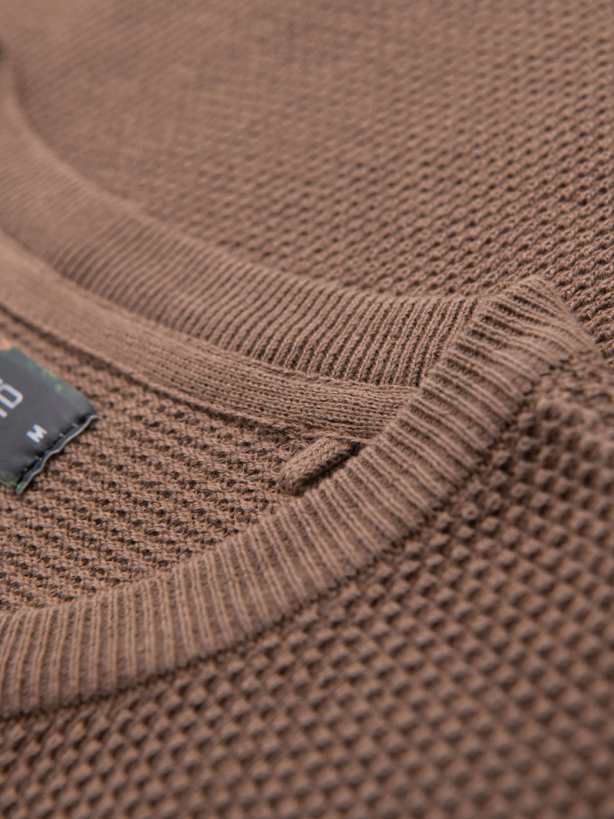 T-shirt with a subtly sweater-like texture is an excellent choice for men who appreciate elegant casualness. The lightweight knit fabric with a fine weave provides comfort in both everyday and more outgoing styling. The metal detail on the sleeve emphasizes the modern character of the model, while the elastic trims give a structured look.